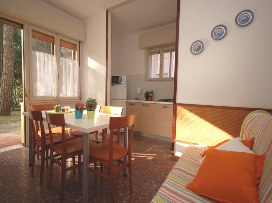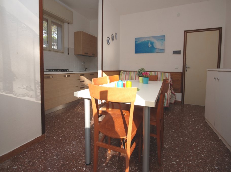 VIERZIMMERWOHNUNG für 8 Personen, bestehend aus: Wohnraum, 2 Schlafzimmer mit 2 verbundbaren Einzelbetten und 1 Einzelbett, Kochnische, 2 Badezimmer, eines mit Badewanne, Balkon. Garten im gemeinsamen Nutzung. Klimaanlage.