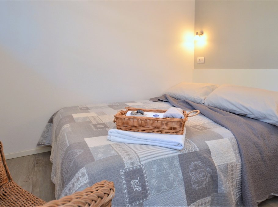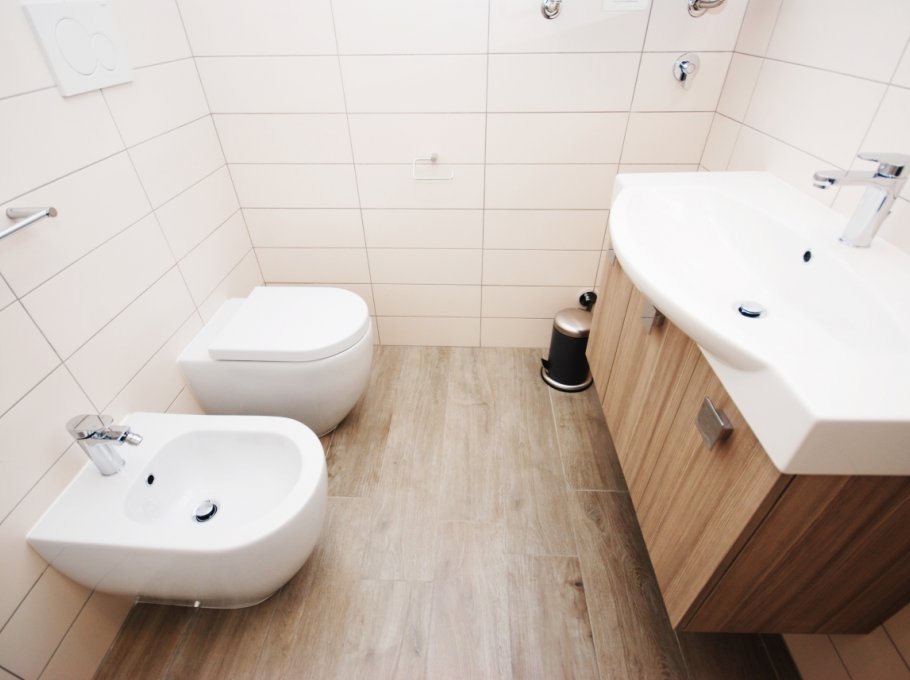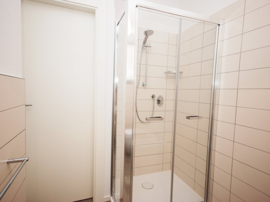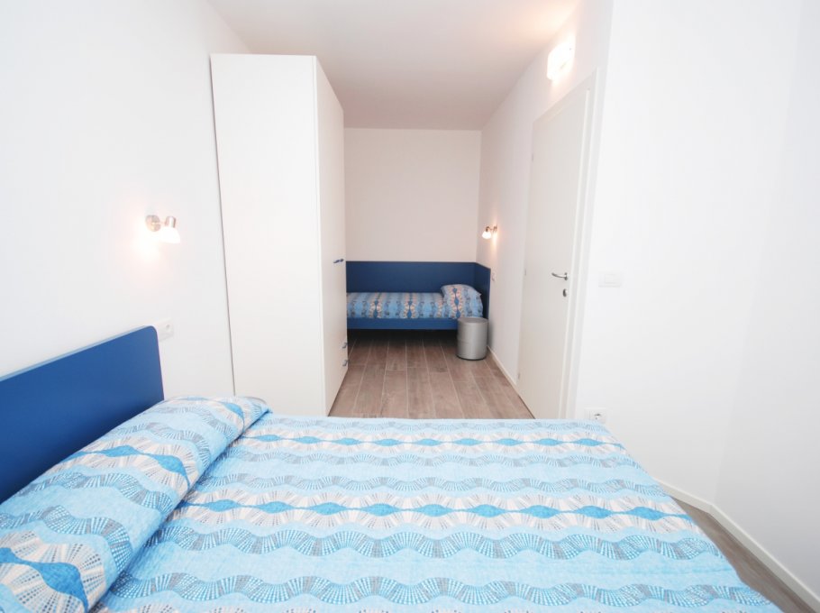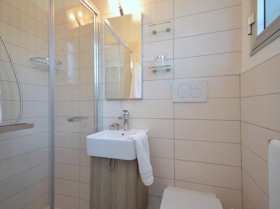 VIERZIMMERWOHNUNG fuer 7-9 Personen, auf 2 ETAGEN, bestehend aus: ERDGESCHOSS: Wohnraum mit 1 Doppelschlafcouch, 1 Schlafzimmer mit franzoesischem Bett, Kochnische, Waschmaschine, Badezimmer, Terrasse, Garten. 1. ETAGE: 1 Schlafzimmer mit Doppelbett, 1 Schlafzimmer mit Doppelbett und Einzelbett, Badezimmer, Balkon. Erste Garnitur Bettwaesche und Handtuecher inbegriffen.