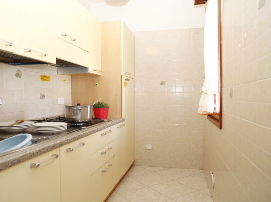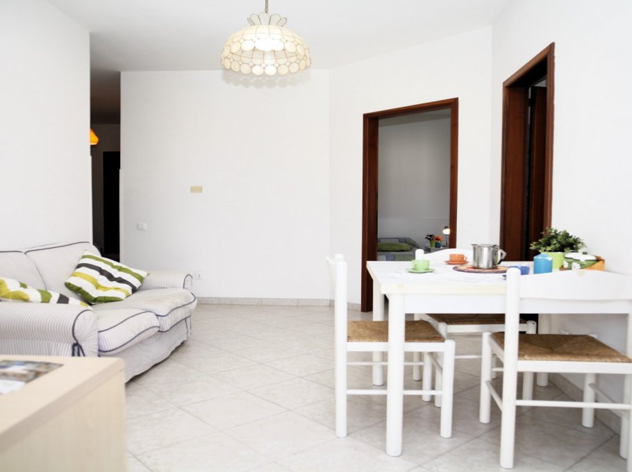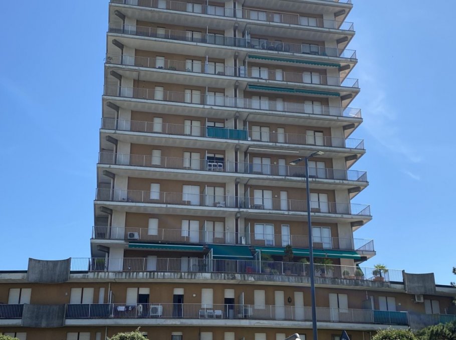 ZWEIZIMMERWOHNUNG fuer 4 Personen, im 7. Stock bestehend aus: Wohnraum mit Kochecke und Ausziehbaresbett, 1 Schlafzimmer mit 1 Doppelbett und ein Einzelbett, Badezimmer mit Fenster und Duschkabine, bewohnbare Terrasse, numerierten Parkplatz, Klimaanlage.