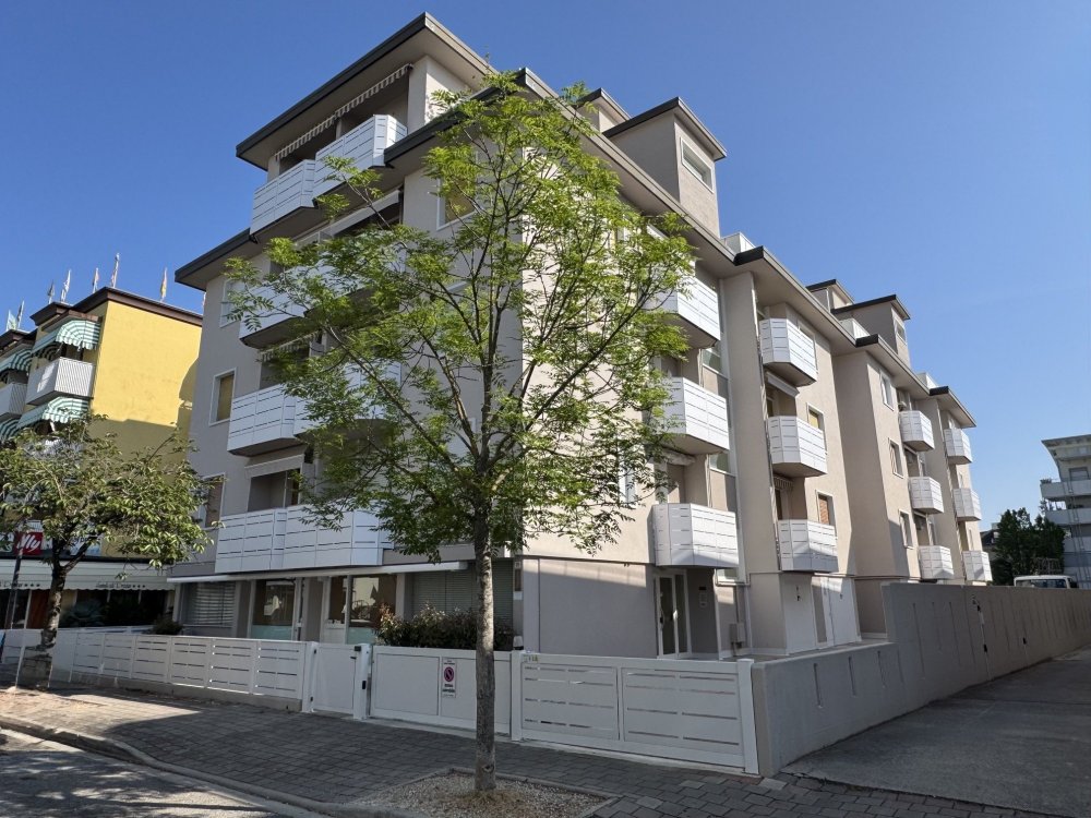 Gebäude in einer ruhigen und zentraler Lage von Sabbiadoro, nur 150 Meter vom Meer entfernt. Geräumige Dreizimmerwohnungen mit Terrasse und nummeriertem Parkplatz.