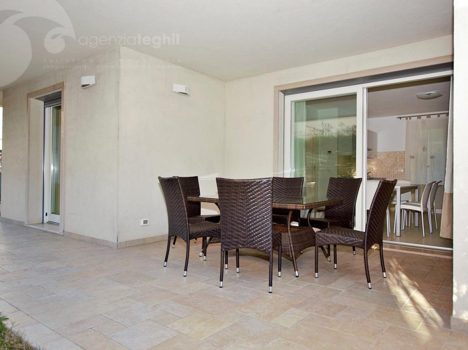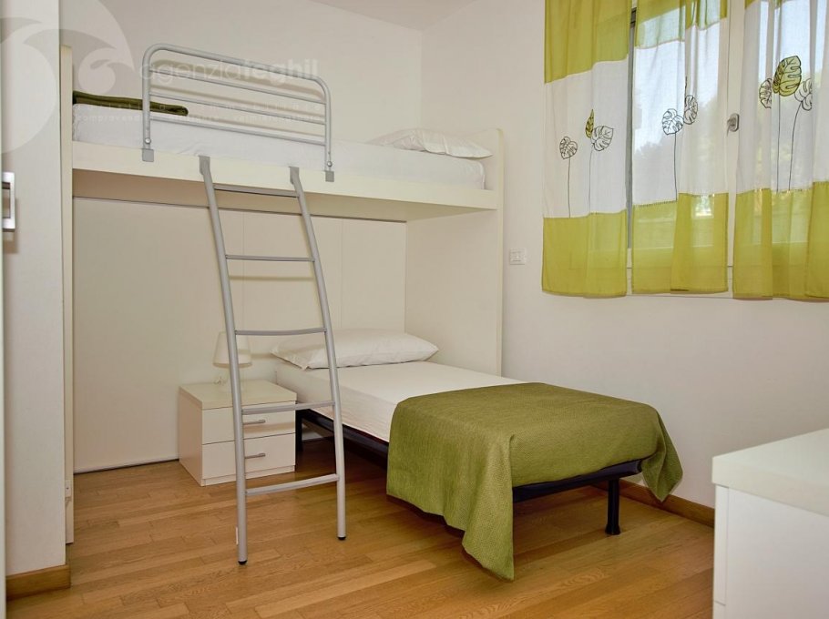 Typ C: 4/5 Personen. Komfortable neue Wohnung im Erdgeschoss mit moderner Einrichtung. Wohnzimmer mit Schlafcouch, Fernseher mit Satellitenanschluss und eine Veranda mit Tisch und Stühlen ausgestattet, mit Blick auf einen kleinen privaten Garten. Küchenzeile mit Kühlschrank 240 lt. (Trennen Gefrierkombination), Geschirrspüler und Mikrowelle und eine Terrasse. Technische Raum mit Waschmaschine. Schlafbereich mit Holzboden und besteht aus einem Schlafzimmer mit Doppelbett, einem Zimmer mit Etagenbett, zwei Bädern mit Fenstern und Duschkabine. Apartment mit Klimaanlage und privatem Parkplatz.