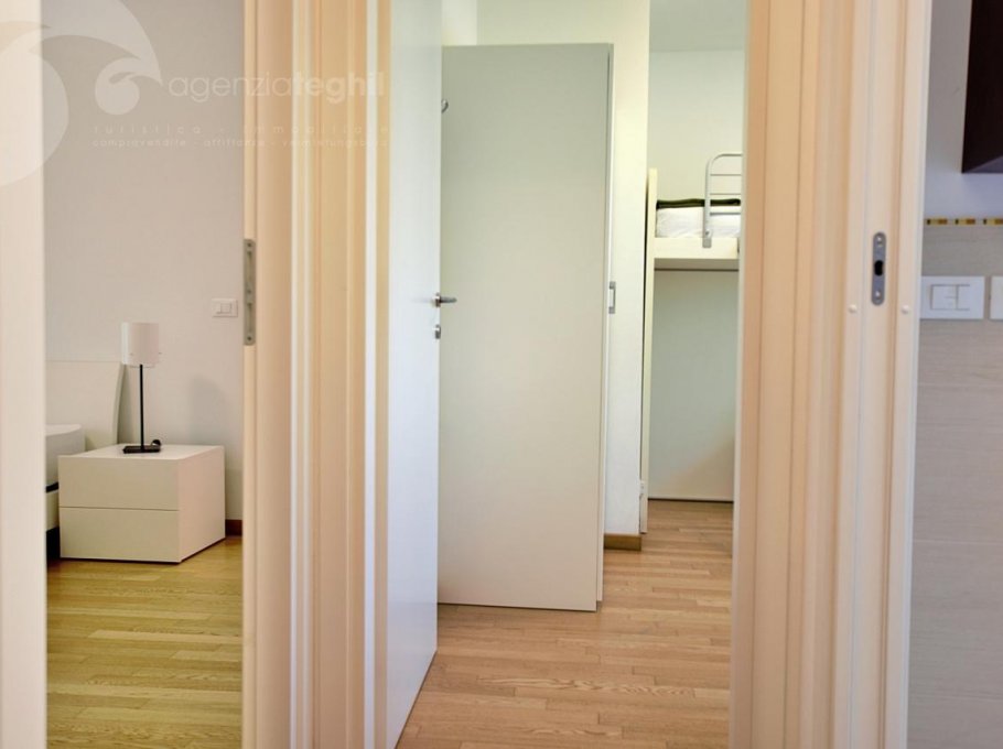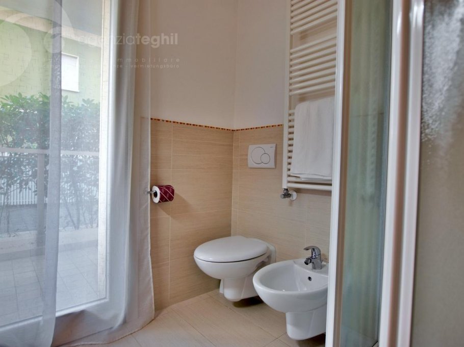 Neuliches Gebäude in ruhiger Lage, mit Lift und reserviertem Parkplatz. Vom Meer 450 mt. und 300 mt. von der Fußgängerzone der Via Udine.