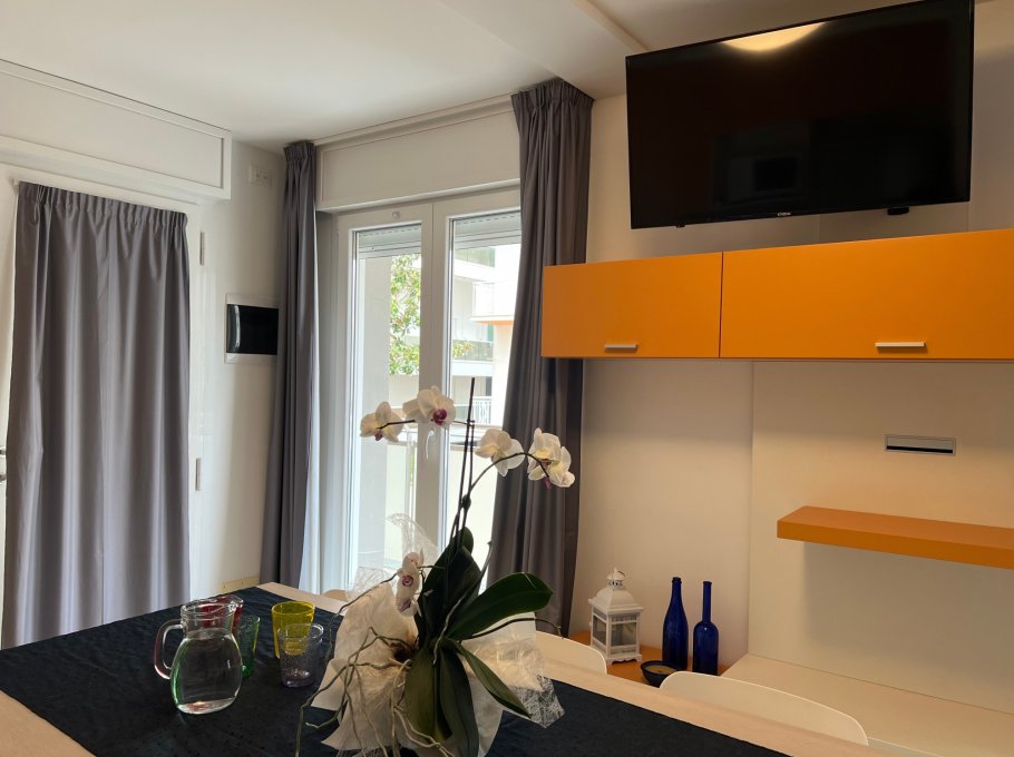 Elegantes, biokompatibles Gebaeude. Es besteht aus 10 Wohnungen, und befindet sich in der Innenstadt von Lignano Sabbiadoro, nur 50 Meter vom Meer entfernt. Die Wohnungen, mit der Verwendung von erneuerbaren Energien erstellt, sind alle sehr sorgfältig eingerichtet, und bieten allen Komfort wie: Sicherheitstüren, SAT-TV, Klimaanlage und Heizung, Safe, Mikrowelle, Filterkaffeemaschine, Espresso-Kaffeemaschine Lavazza A Modo Mio®, Wasserkocher, Geschirrspüler und Waschmaschine, großen Kühlschrank mit separatem Gefrierfach und Fön. Aufzug. Jede Wohnung verfügt über 1 nummerierten Parkplatz pro Wohnung ca. 100 Meter entfernt. 1 Kostenlose „Light WI-FI (no streaming no download) fuer 3 Geraete pro Mal.