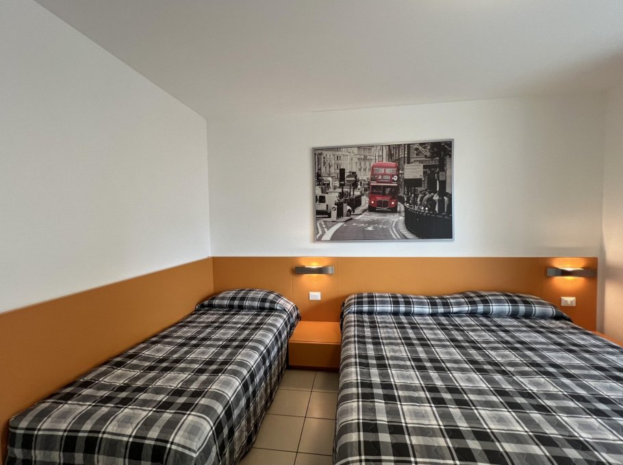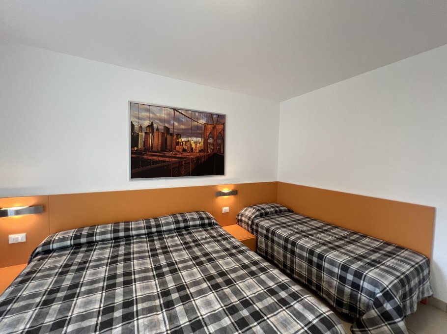 Typ C8: Wohnschlafraum mit Kochecke und Doppelcouch, 2 Dreibettzimmer, Bad mit Duschkabine/Wc, und möblierte Balkon. Max 8 Pax. 75 qm