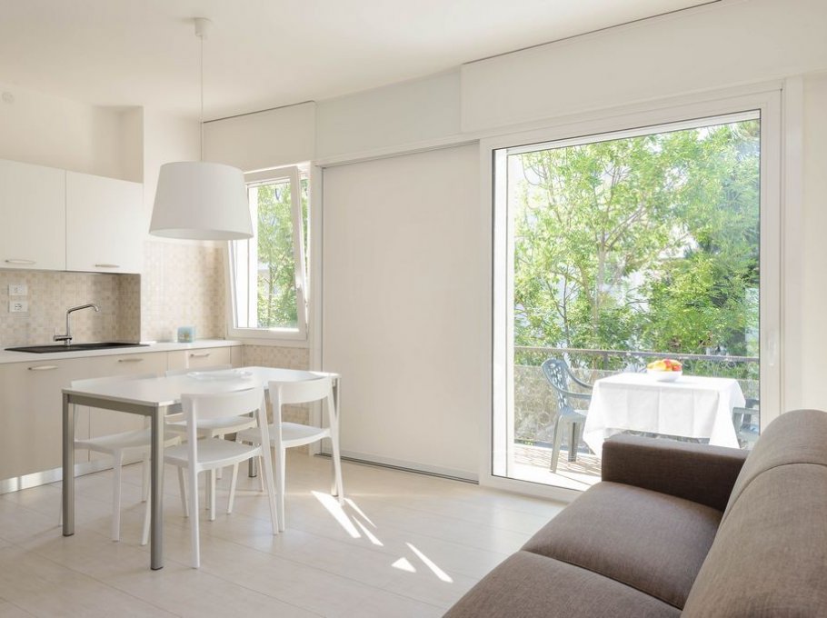 Das Gebaeude liegt im Herzen von Lignano Sabbiadoro, nur 80 Meter weit vom Strand. Es ist die ideale Loesung fuer diejenigen, die Komfort auch im Urlaub lieben, und verfügt über modern und geschmackvoll eingerichtete Wohnungen. Sie sind sehr komfortabel und verfügen über Sicherheitstüren, Klimaanlage, TV (no Sat), Safe, Filterkaffeemaschine, Geschirrspüler, großen Kühlschrank mit Gefrierfach und Fön. 1 nummerierter Parkplatz pro Wohnung (nur fuer normalen Autos. Kein SUV oder Minibus). Zur gemeinsamen Benützung: Waschecke mit Waschmaschine. “Light WI-FI (no streaming no download) auf Anfrage möglich (nicht im Preis inbegriffen)“.