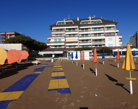 Neubau in Sabbiadoro, in Meeresnähe. Das Gebäude besteht aus drei Wohnungen, von denen sich zwei im Erdgeschoss mit großer privater Terrasse/Garten und eine im ersten Stock befinden. Mit hochwertigen Oberflächen, voll ausgestattet und bietet auch Wäscheservice und Reinigung unter der Woche, im Preis inbegriffen