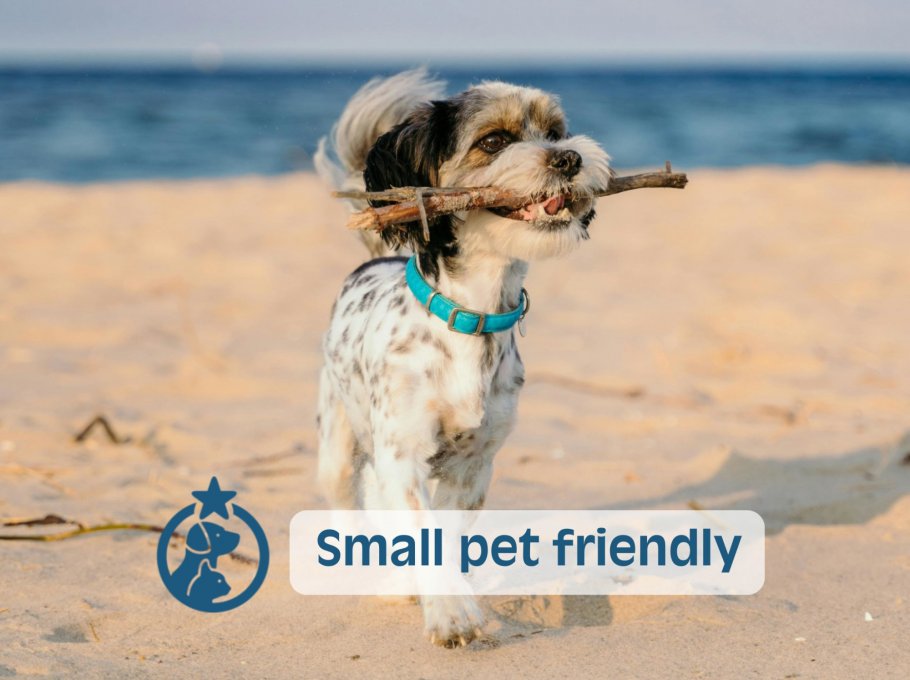 Typ B5. Wohnschlafraum mit Kochecke und Doppelcouch, Dreibettzimmer, Bad mit Dusche/Wc und moeblierte Balkon mit seitlichem Meerblick. Max 5 Pax.