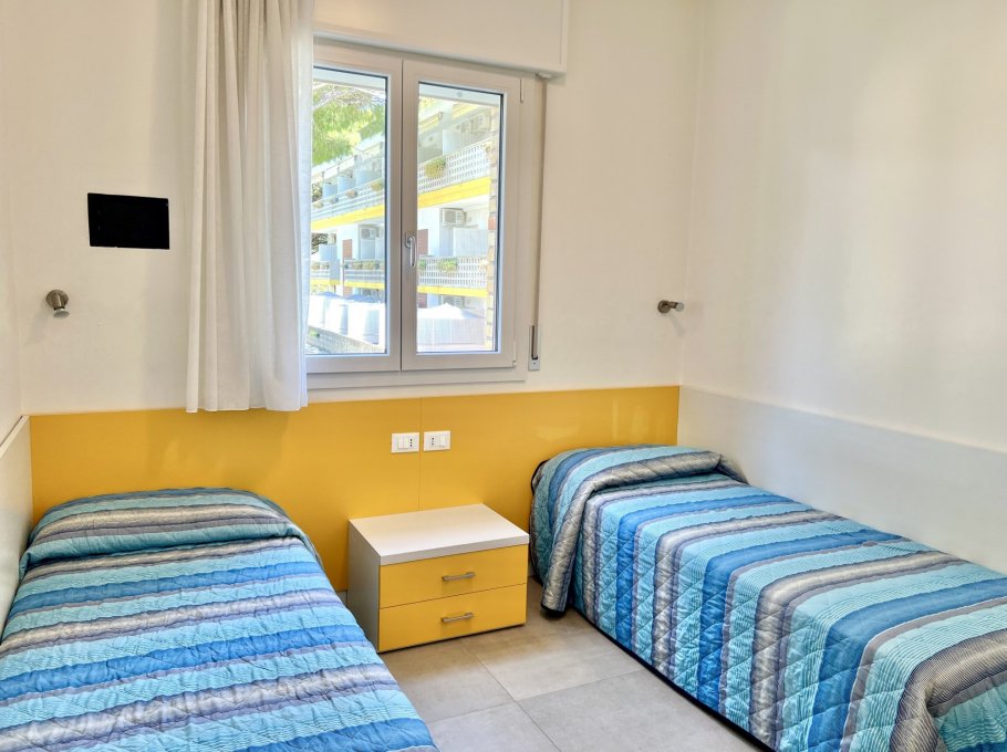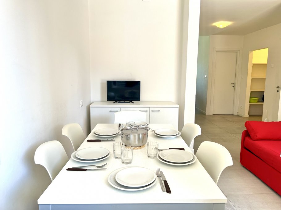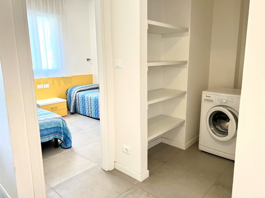 Apartmenthaus nur 200 Meter weit entfernt vom Strand und nur wenige Gehminuten vom Zentrum von Lignano Sabbiadoro. Das Apartmenthaus verfuegt ueber Aufzug und 1 nummerierten Parkplatz. Die Wohnung ist mit allem Komfort ausgestattet: Sicherheitstüren, Klimaanlage, TV (no Sat), Safe, Mikrowellenherd, Wasserkocher, Filterkaffeemaschine, Waschmaschine, Geschirrspüler, großen Kühlschrank mit Gefrierfach, Fön. “Light WI-FI (no streaming no download) auf Anfrage möglich (nicht im Preis inbegriffen)“.
