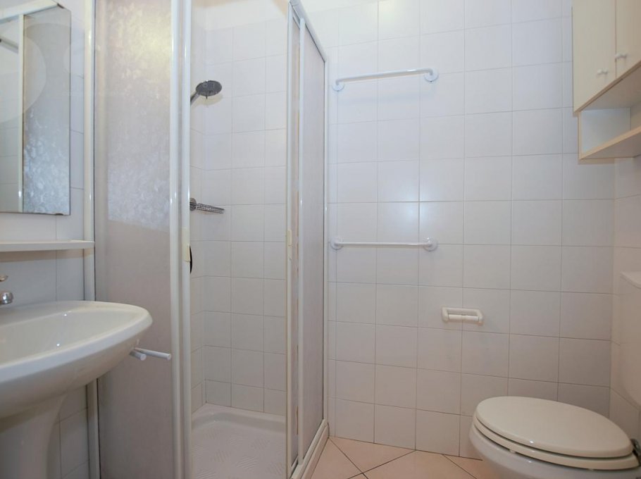 Typ B 3/4 Personen: Renoviertes Apartment mit moderner Einrichtung im 3. Stock (mit Aufzug). Es besteht aus einem Schlafzimmer mit Doppelbett und Terrasse, einem Wohnzimmer mit Doppelschlafsofa und großer Terrasse mit seitlichem Meerblick sowie Gartentisch und -stühlen, einer Küchenzeile mit 240-Liter-Doppeltürkühlschrank und einem fensterlosen Badezimmer mit Dusche.