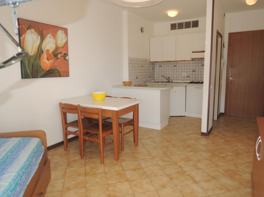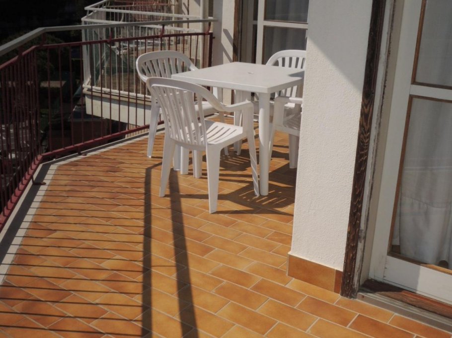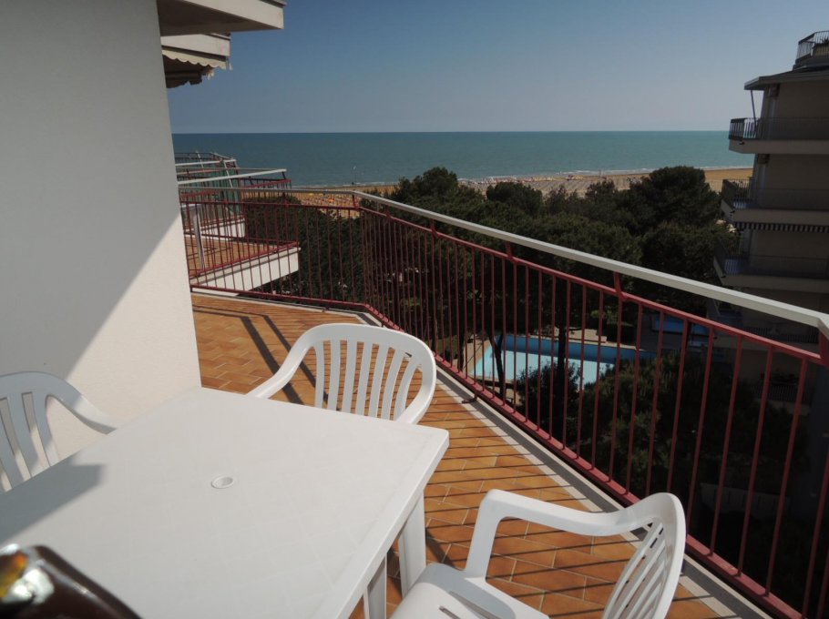 Geräumiges und sehr helles Apartment in der 6. Etage mit Süd / West-Ausrichtung und herrlichem Meerblick. Es besteht aus einem Schlafzimmer mit Dopplebett, einem Wohnzimmer mit einem Doppelschlafsofa, einer Küche, einem Badezimmer mit Duschkabine, Klimaanlage (auf Anfrage, Zuschlag extra, €. 35,00 pro Woche) und einer großen Terrasse mit Tisch und Stühlen, auf der Sie die Sonne und den Meerblick genießen können, Parkplatz