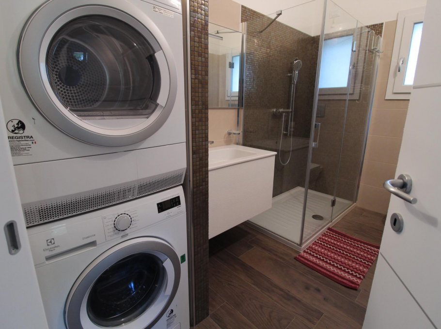 Klimaanlage (auf Anfrage – extra Preis), Waschmaschine und Trockner.