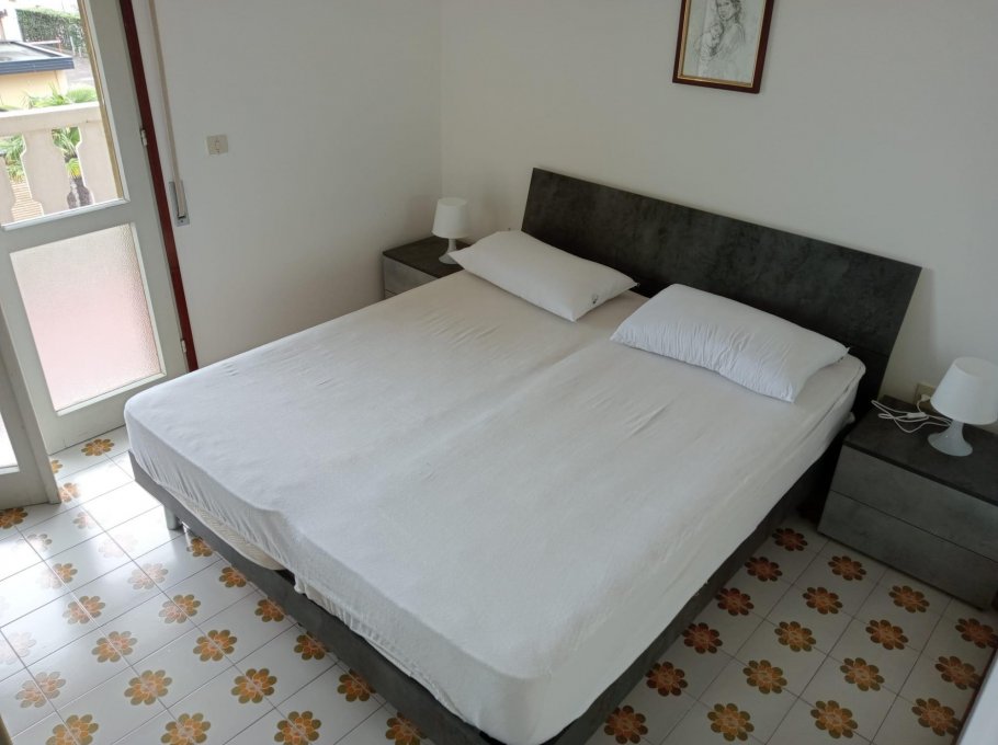 Wohnung in Lignano Sabbiadoro mit: ein Doppelschlafzimmer, ein Schlafzimmer mit Stock Bett, Wohnzimmer, küche, Badezimmer mit Box Kabine, Terrasse, 2^ Stock, Parkplatz, Garten, Klimaanlage.