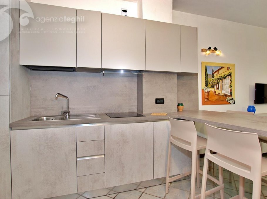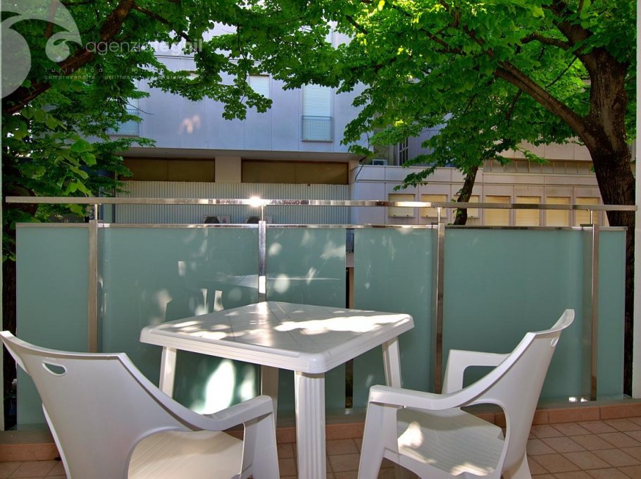 Typ C: 4/5 Personen - Renovierte Wohnung im 1. Stock besteht aus einem Schlafzimmer, einem Zimmer mit zwei Einzelbetten, Badezimmer mit Duschkabine, Fenster und Waschmaschine. Wohnzimmer mit Schlafcouch, Fernseher (nur Italienische Tv-Sender) und Terrasse (Seitenansicht der Fußgänger Zone) mit Tisch und Stühlen, Küchenzeile mit Induktionskochfeld ausgestattet mit Kühlschrank eintürig 180 lt.