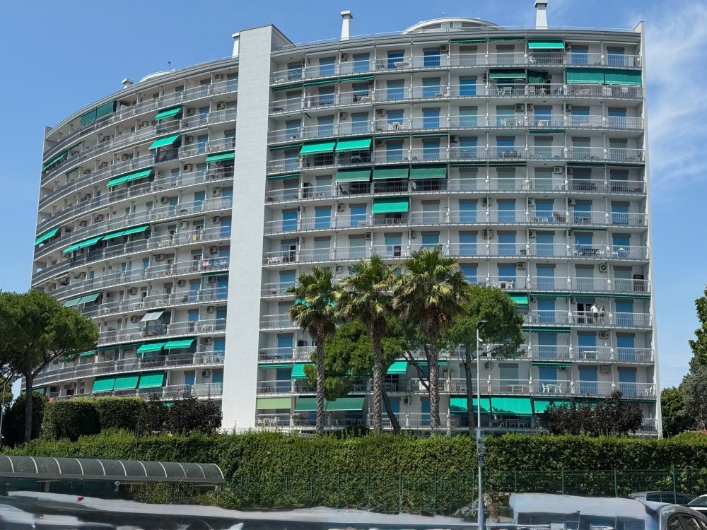 Gebäude 100 Meter vom Meer entfernt, Wohnung im 6. Stock mit herrlichem Meerblick; es verfügt über ein Wohnzimmer mit Küchenzeile mit Doppelschlafsofa, eine mit Doppelbett und Einzelbett und eine große Terrasse. Verfügt über eine Klimaanlage (auf Anfrage, Zuschlag extra, €. 35,00 pro Woche) und einen Parkplatz. Die Wohnanlage verfügt außerdem über zwei Swimmingpools für die Apartments.
