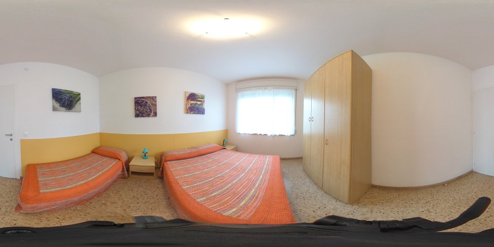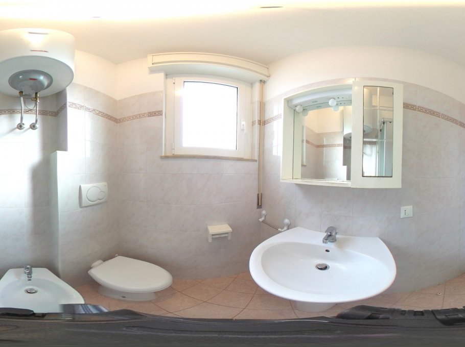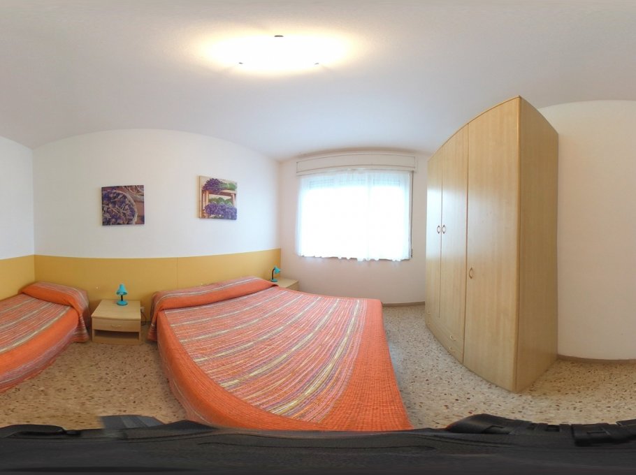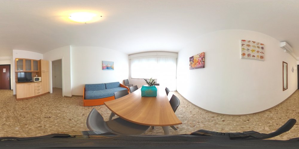 Dreiraumappartment bestehend aus einem Wohnraum mit Kochnische und Doppelschlafcouch,Tv und Mikrowelle, einem Dreibettzimmer, einem Zweibettzimmer, Badezimmer mit Duschkabine/Bidet/Wc, Balkon mit Sitzgarnitur und zwei Autoabstellplaetzen (davon einen ueberdacht). Klimaanlage, Wi-fi und Endreinigung sind im Preis inbegriffen. In den Mietbestimmungen der Agentur sind die Modalitaeten der obengenannten Dienste erklaert. Groesse des Autoabstellplatzes: 4,20x3,10x1,95