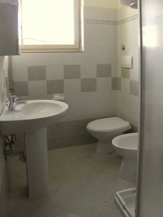 Dreiraumappartment bestehend aus einem Wohnraum mit Kochnische und Doppelschlafcouch,Tv und Mikrowelle, einem Dreibettzimmer, einem Zweibettzimmer, Badezimmer mit Duschkabine/Bidet/Wc, Balkon mit Sitzgarnitur und zwei Autoabstellplaetzen (davon einen ueberdacht). Klimaanlage, Wi-fi und Endreinigung sind im Preis inbegriffen. In den Mietbestimmungen der Agentur sind die Modalitaeten der obengenannten Dienste erklaert. Groesse des Autoabstellplatzes: 5,40x3,10x1,95