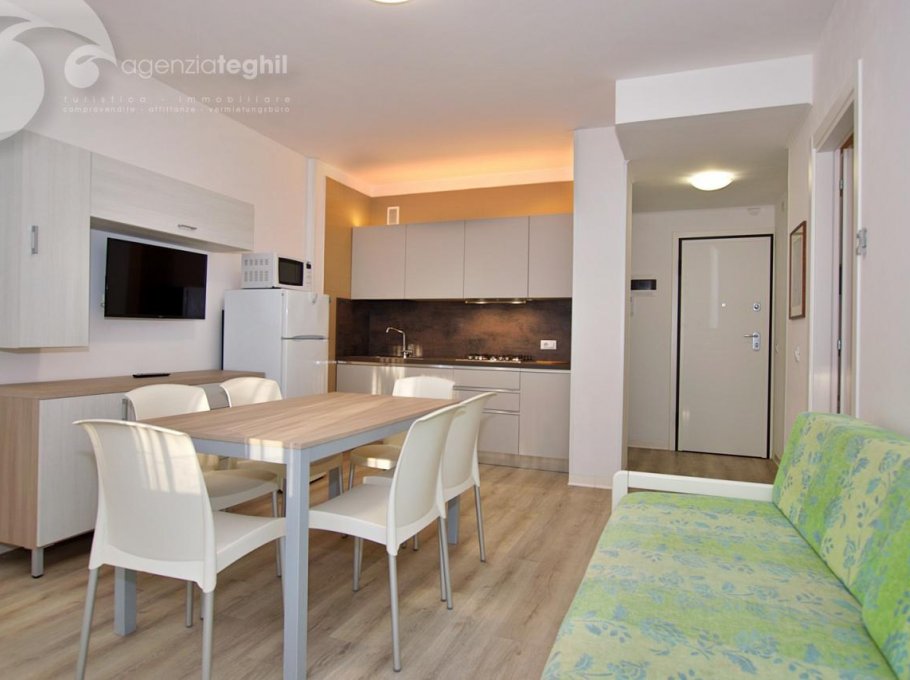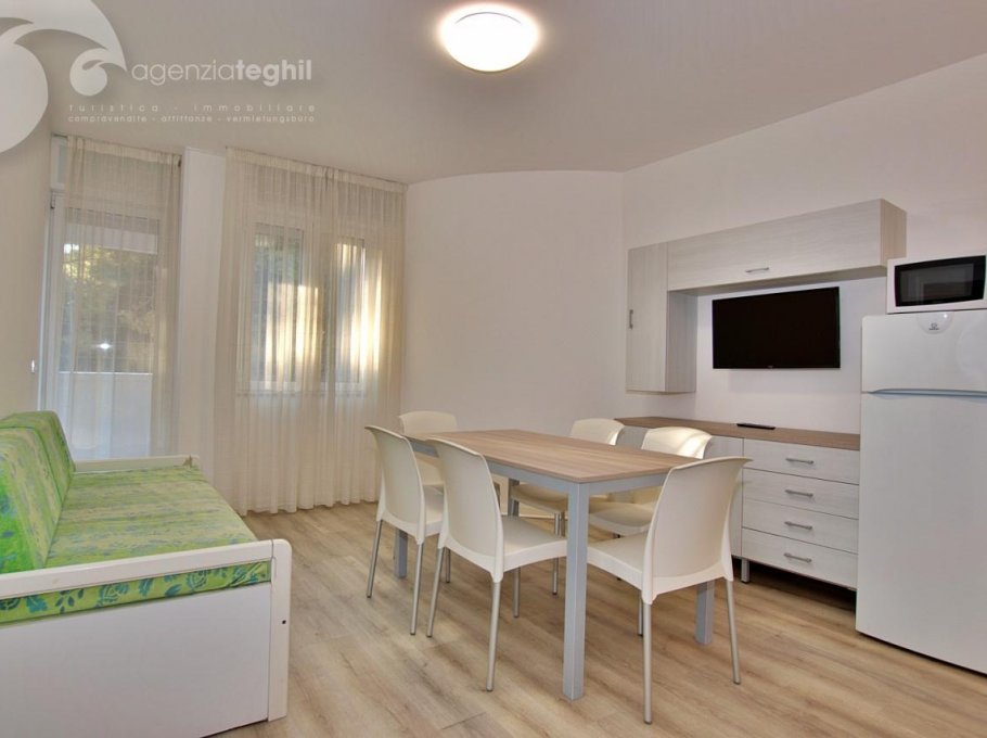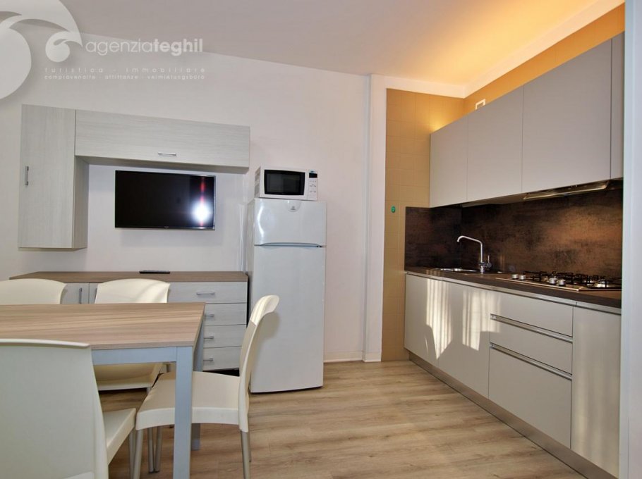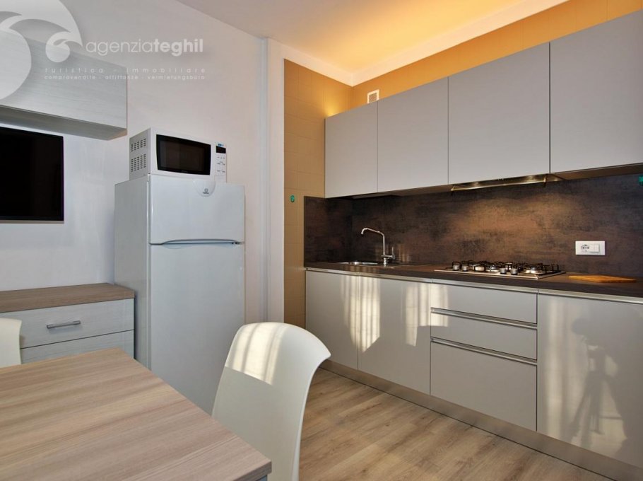 Typ B: 3/4 Personen - Appartement, im 2. Stock besteht aus einem 3-bettzimmer, Badezimmer mit Duschkabine und Waschmaschine, Wohnzimmer mit Schlafcouch, TV (nur Italienische TV-Sender) und Terrasse mit Tisch und Stühlen. Küchenzeile mit Kühlschrank 240 lt (separatem Gefrierfach) und Mikrowelle. Alle Wohnungen sind mit Klimaanlage und Parkplatz.