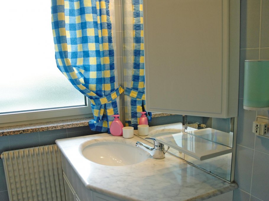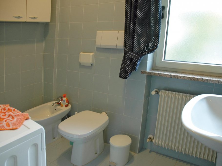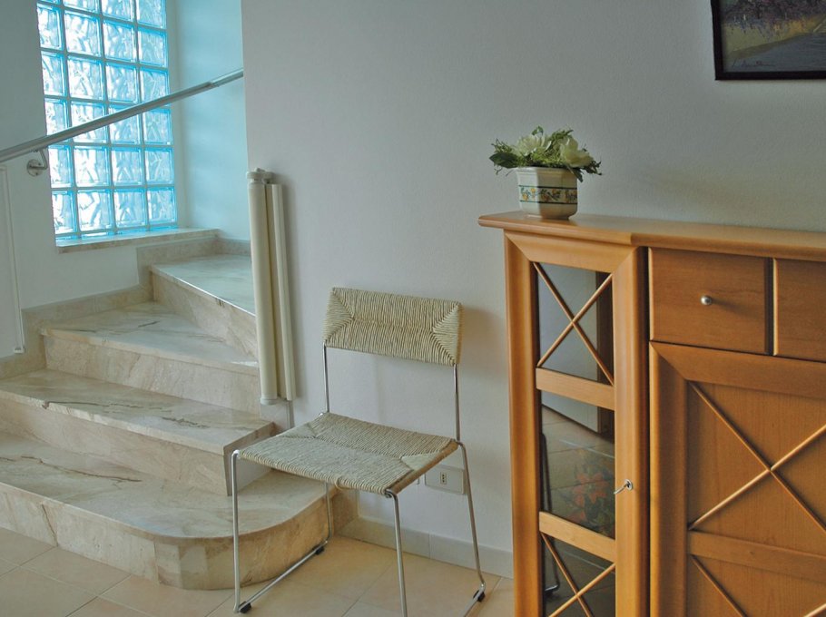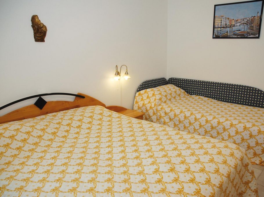 1. Stock: 1 Dreibettzimmer mit Balkon, 1 Ehebettzimmer mit Balkon (seitlicher Meerblick), Badezimmer mit Duschkabine/WC/Bidet.