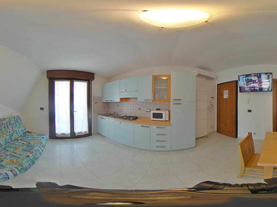 Die Wohnungen bestehen aus einem Wohnraum mit Kochecke und Einzelschlafcouch, Tv, Mikrowelle und Waschmaschine, einem Doppelschlafzimmer, einem zweiten Schlafzimmer mit zwei getrennten Betten, einem Badezimmer mit Duschkabine/Bidet/Wc und Balkon mit Sitzgarnitur. Nummerierter Autoabstellplatz beim Parkhaus ca. 300 mt. entfernt. Klimaanlage, Wi-fi und Endreinigung sind im Preis inbegriffen. In den Mietbestimmungen der Agentur sind die Modalitaeten der obengenannten Dienste erklaert. Groesse des Autoabstellplatzes: 5,00x2,00x2,30