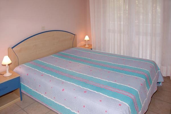 Wohnung im 2. Stock mit Lift und bestehend aus 1 Ehebettzimmer, 1 Stockbettzimmer, Wohnzimmer mit Diwanbett x 1 Person, kleine Küche, Duschkabine/WC/Bidet, ausgestatteter Balkon, TV, Klimaanlage (gegen Bezahlung), Waschmaschine, Mikrowelle, Safe, neu möbliert, Parkplatz nicht nummeriert.