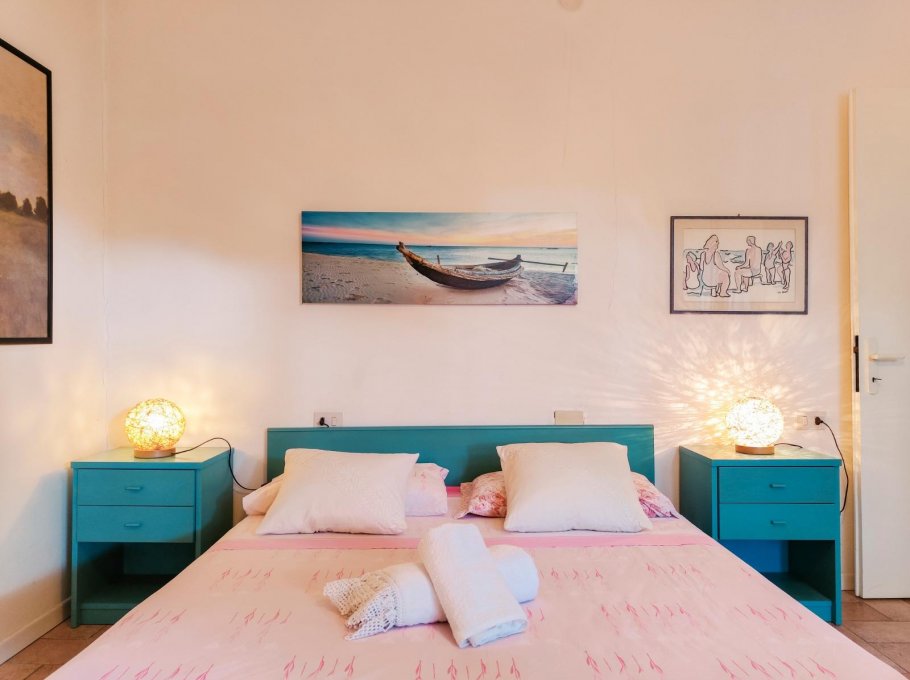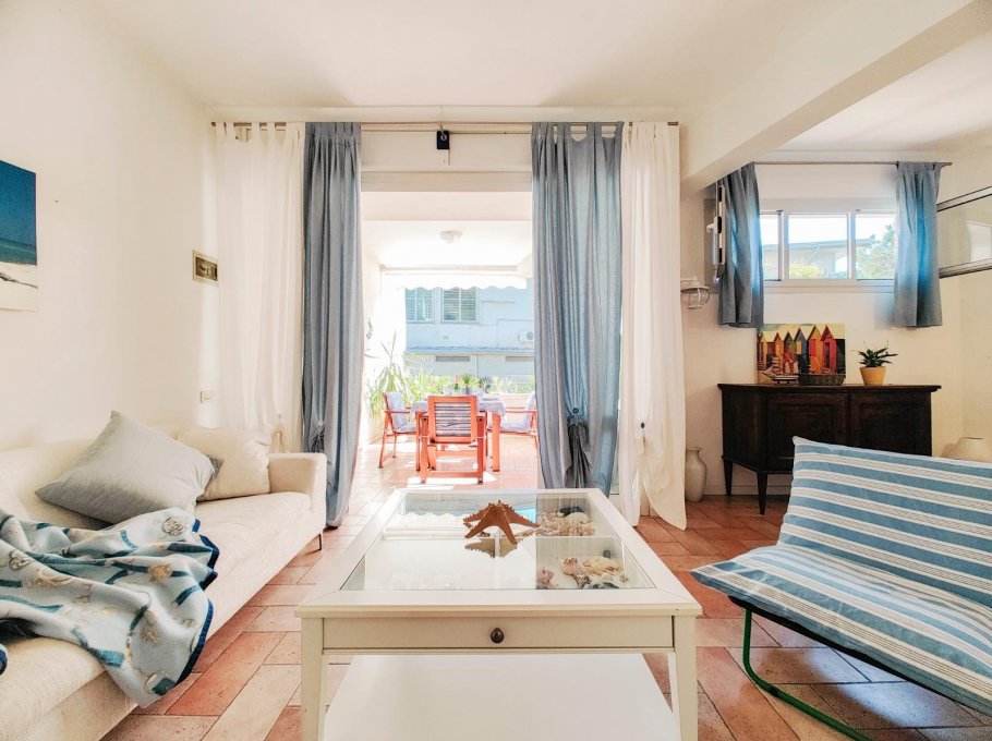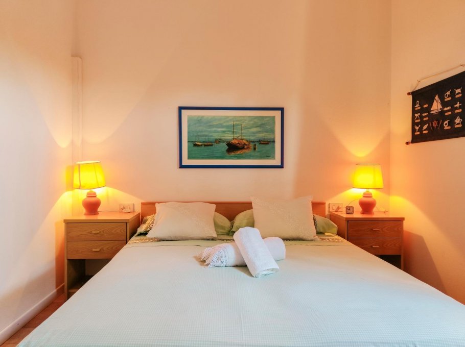 Wohnung im Hochparterre bestehend aus einem großen Wohnzimmer mit Terrasse, Küche, einem Schlafzimmer mit Doppelbett und einem Schlafzimmer mit Doppelbett und Einzelbett, kürzlich renoviertem Badezimmer mit Dusche und Fenster. TV, Waschmaschine, Klimaanlage gegen Aufpreis von 30,00 € pro Woche.
