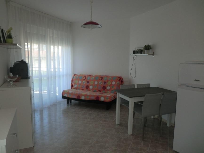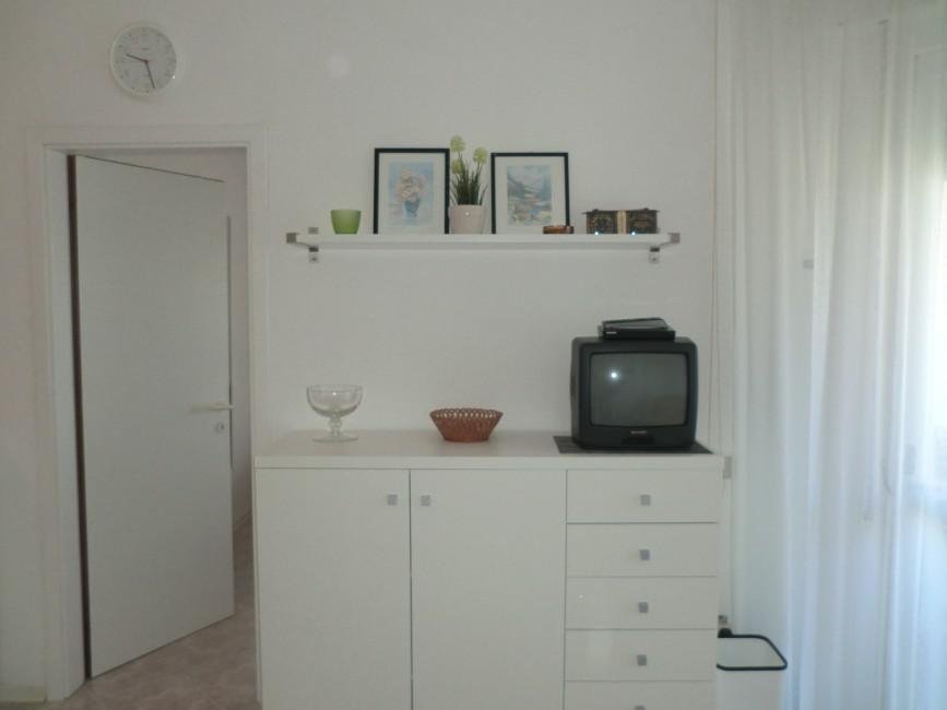 Big residence situated situated in front of the beach. It disposes of parking place not numebered in common area, lift and swimmingpool. The apartment is located on the 8th floor on the west side and disposes of a double bedded-room, living room with kitchen and double bed sofa, bath-room, TV and balcony wiht sea view.Washingmachine.Ape: classe energetica G. Epgl: 369.944 kwh/mq anno. Epe3.403 kwh/mq anno. Epi: 141.237 kwh/mq anno.