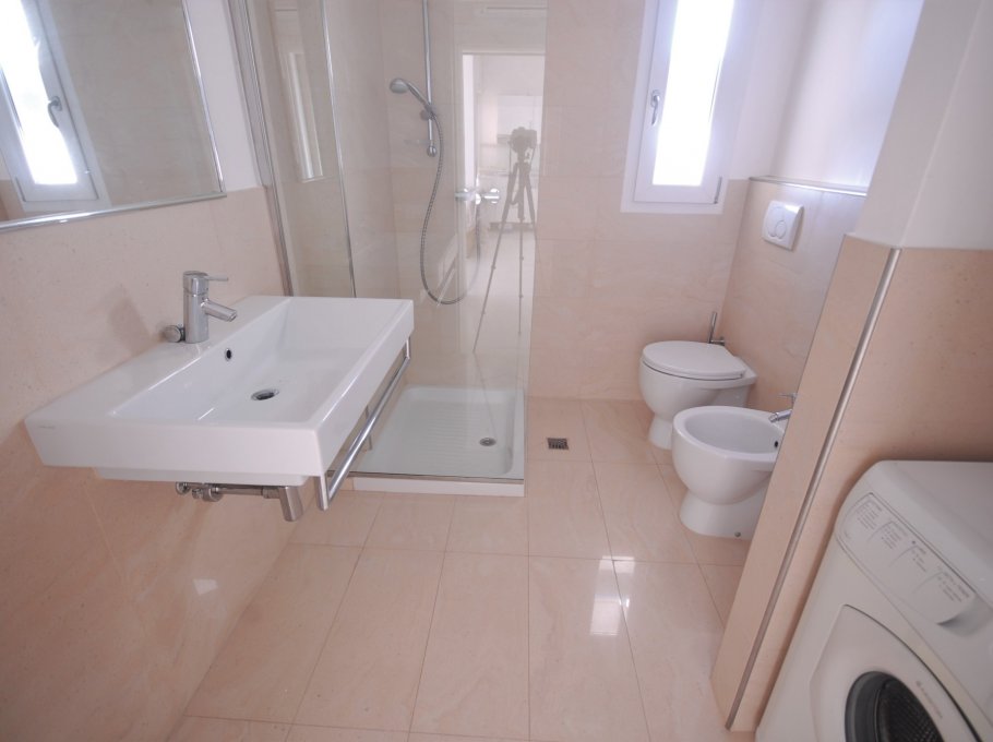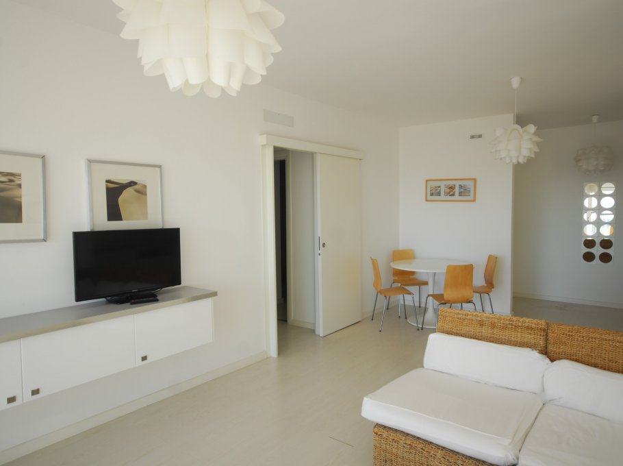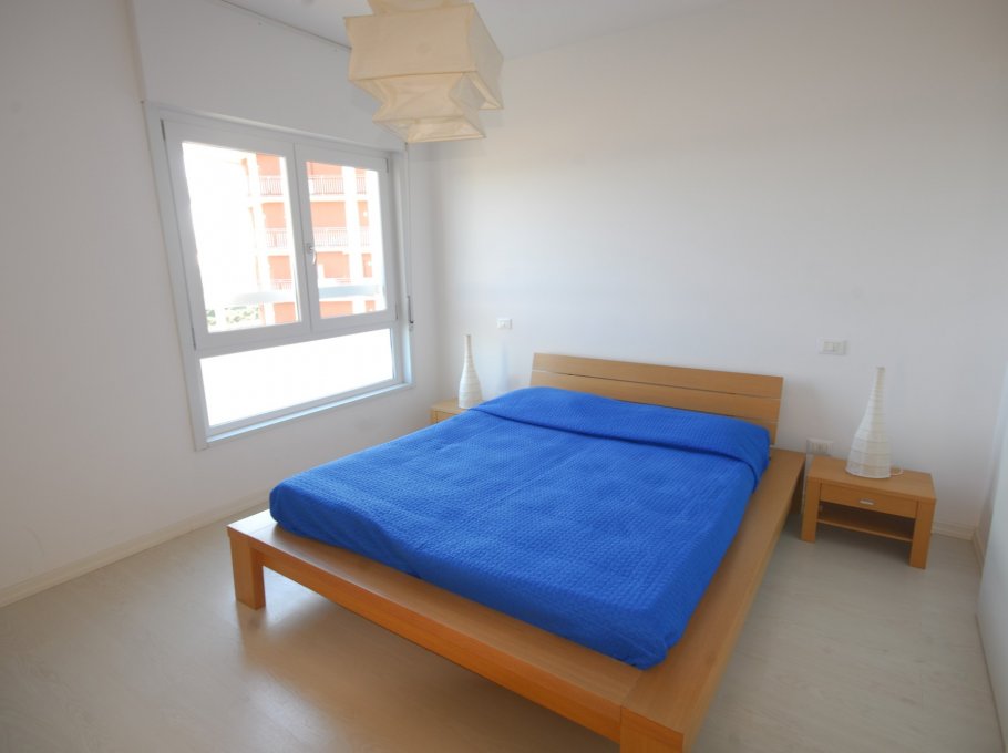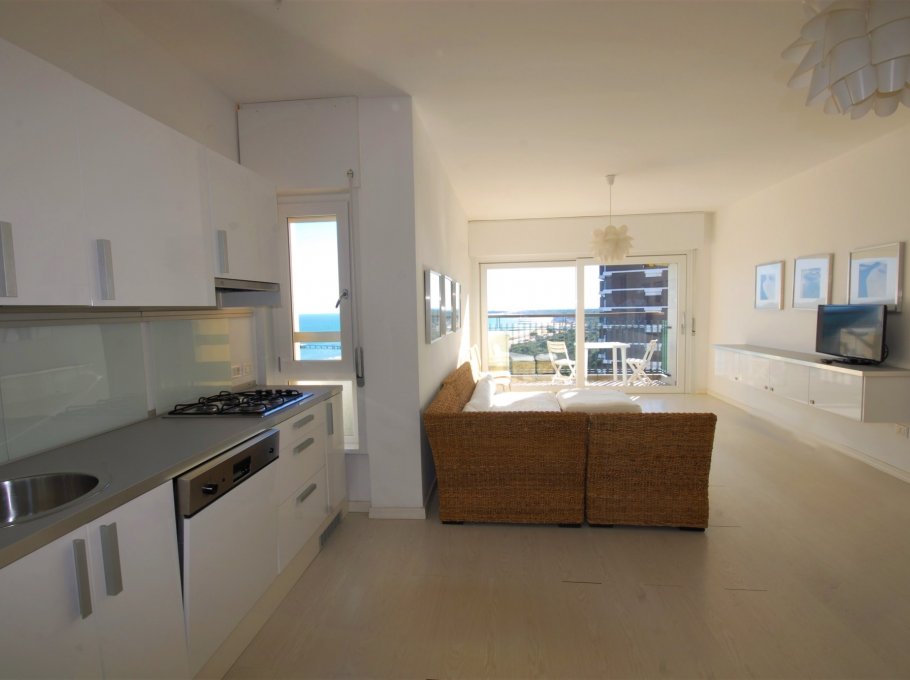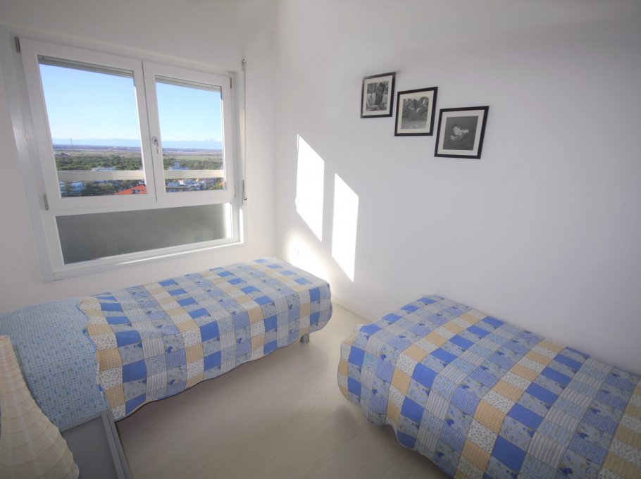 Typ C: Die Wohnung liegt am 13. Stockwerk und ist sehr geräumig, lichtdurchflutet, modern und stilvoll eingerichtet; das Apartment besteht aus einem großen Wohn-/Esszimmer mit Couch und Kochecke, hübscher möblierter Balkon mit einem atemberaubenden Blick auf das Meer, den Leuchtturm und den Pinienhain, ein Doppelschlafzimmer, ein Schlafzimmer mit zwei Einzelbetten und einem Zusatzbett. Zwei Badezimmer mit Dusche/WC. Für 4-5 Personen. TV - Geschirrspülmaschine - Waschmaschine - Klimaanlage. Aufenthalte von Sonntag auf Sonntag. Energieklasse D (118.67kWh/Qm Jahr). CIN: IT030049B48WXS34G9