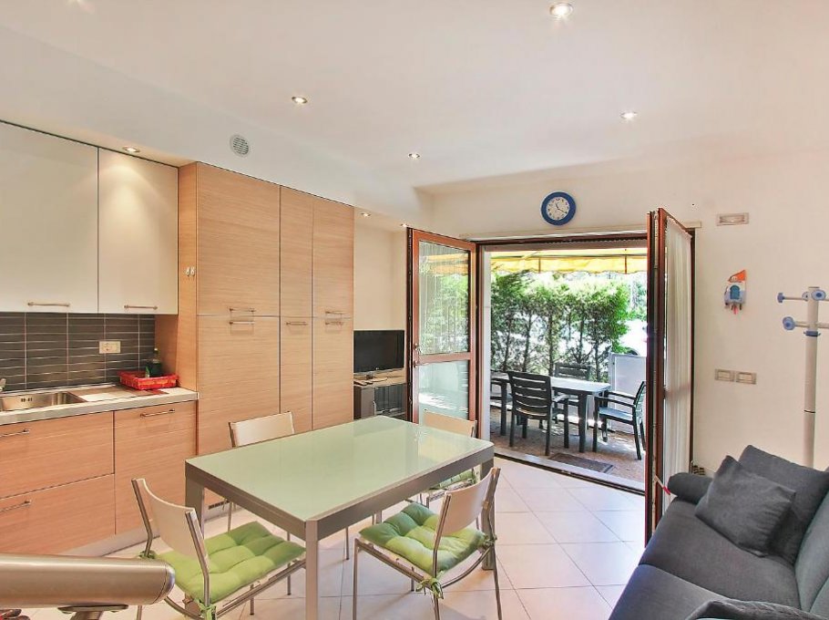 Komfortable Wohnung Nr. 17 im Erdgeschoss mit Terrasse zur exklusiven Nutzung und eingezäunten, bestehend aus Wohnzimmer mit Doppelschlafcouch, Kochnische, Doppelzimmer, Zimmer mit 2 franzosischen Betten, Bad mit Dusche (4/6 Betten). 1 Garage ca. 100 Meter von der Wohnung entfernt.