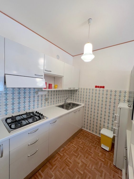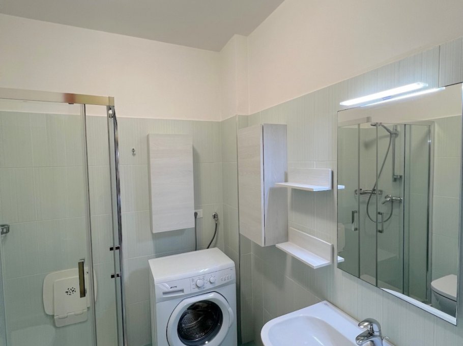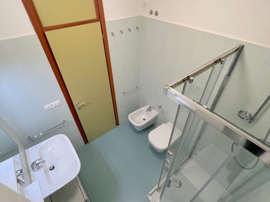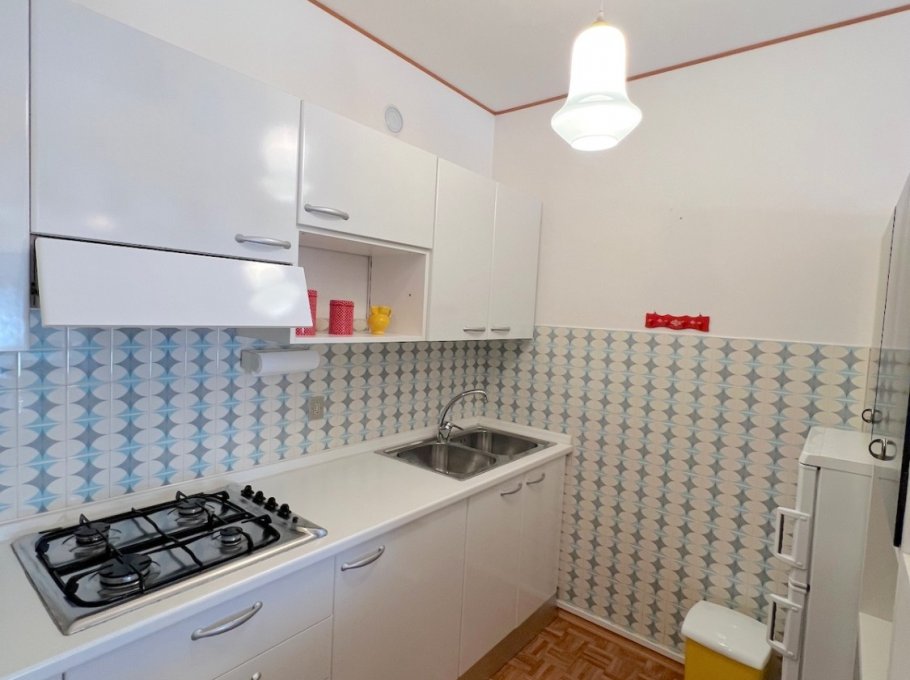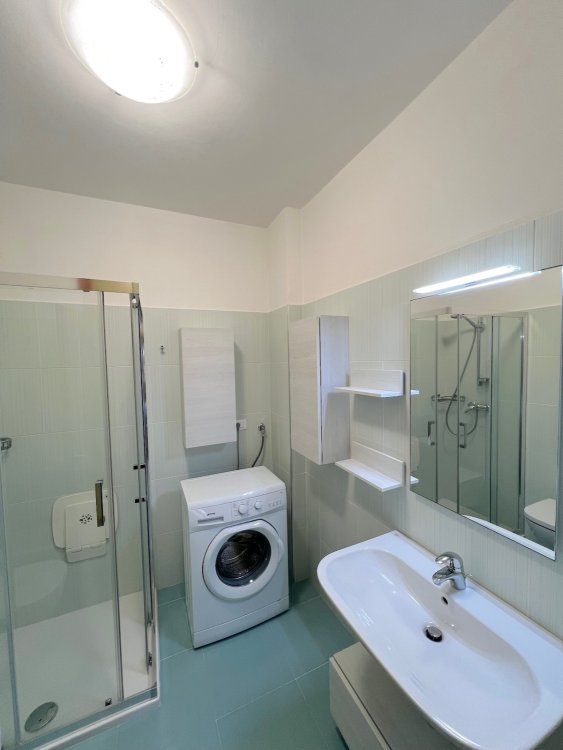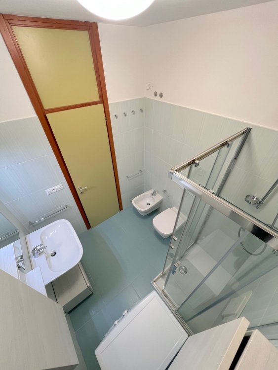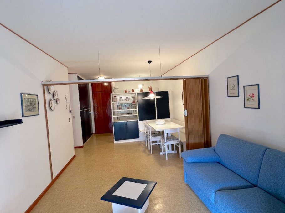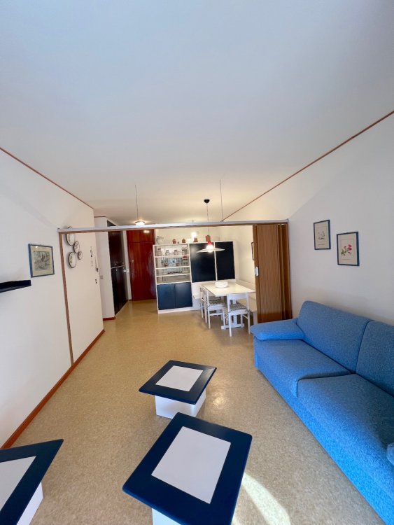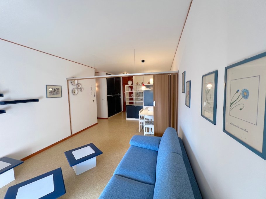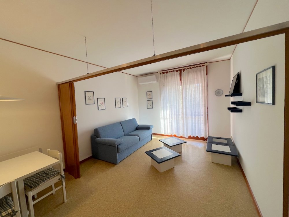 Komfortable Wohnung Nr. 52 auf der 3°Stock mit Terrasse, bestehend aus einem Wohnzimmer mit Doppelschlafcouch und direktem Zugang zur Terrasse, Kochnische, Doppelzimmer mit direktem Zugang zur Terrasse, Badezimmer mit Duschkabine (2/4 Betten).