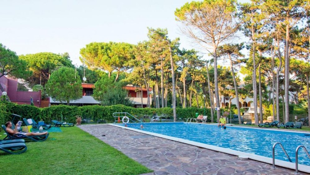 RESIDENCE RIVIERA COMPLEX, Viale del Commercio, Lignano Riviera, 100 mt zirka vom Strand. HOCHHAUS MIT SCHWIMMBAD.