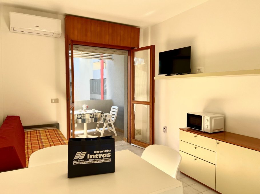 Apartmenthaus nur wenige Gehminuten vom Zentrum von Lignano Sabbiadoro und nur 50 Mt vom Strand entfernt. Aufzug. 1 nummerierter Parkplatz ca. 750 Meter entfernt. Die Wohnung liegt im 2. Stock und verfuegt ueber TV (no Sat), Mikrowelle und Klimaanlage. “Light WI-FI (no streaming no download) auf Anfrage möglich (nicht im Preis inbegriffen)“.