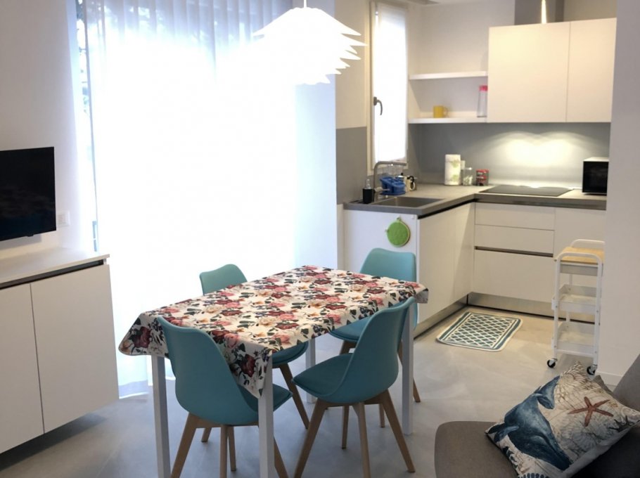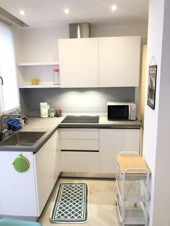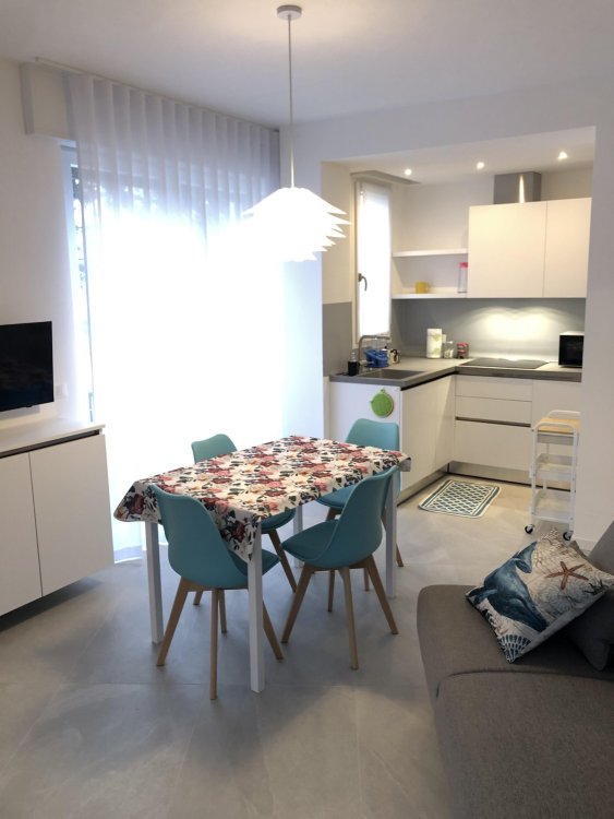 Renovierte Wohnung, bestehend aus zwei Schlafzimmern, Wohnzimmer, Kochnische, Bad, Klimaanlage, Waschmaschine, TV, Parkplatz, Gemeinschaftspool.