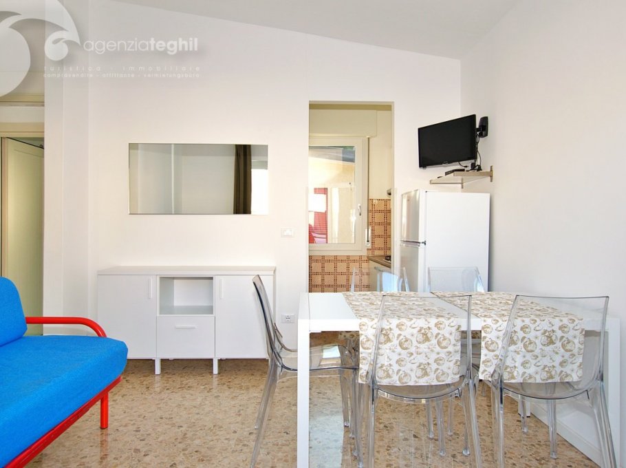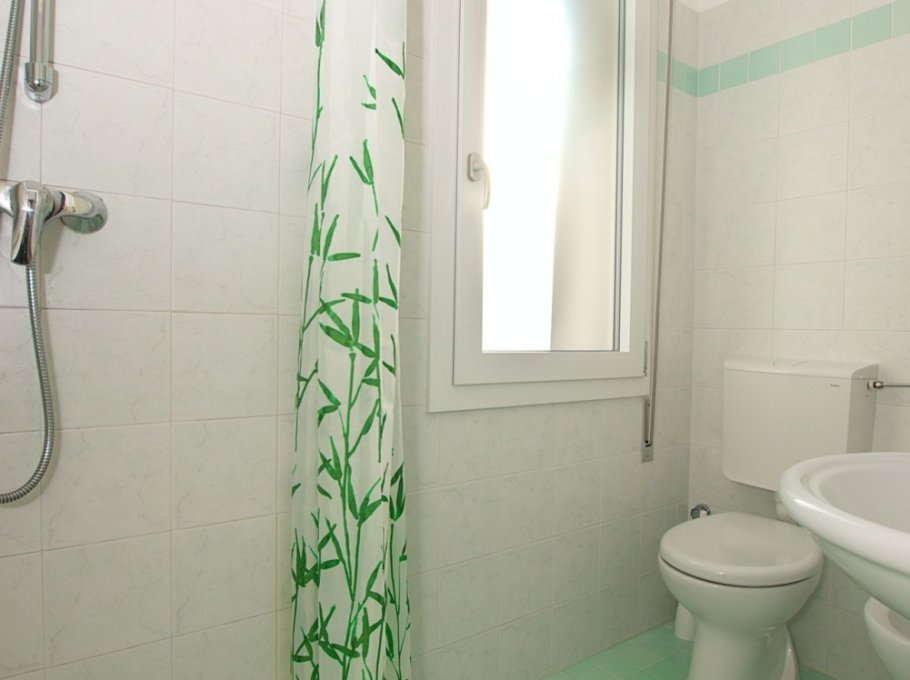 Typ C: 4/5 Personen - Appartement im Erdgeschoss mit 1 Doppelzimmer, 1 kleinen Zimmer mit Stockbett, Wohnzimmer mit Einzelbettcouch und Kochnische, Bad mit Dusche und Fenster, Terrasse.