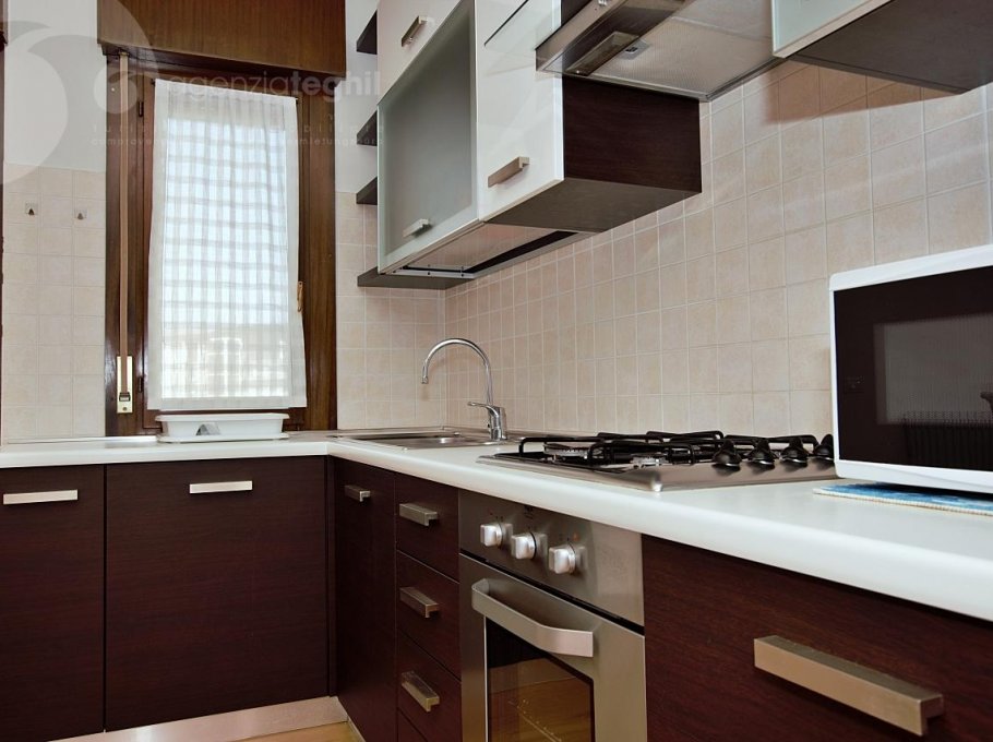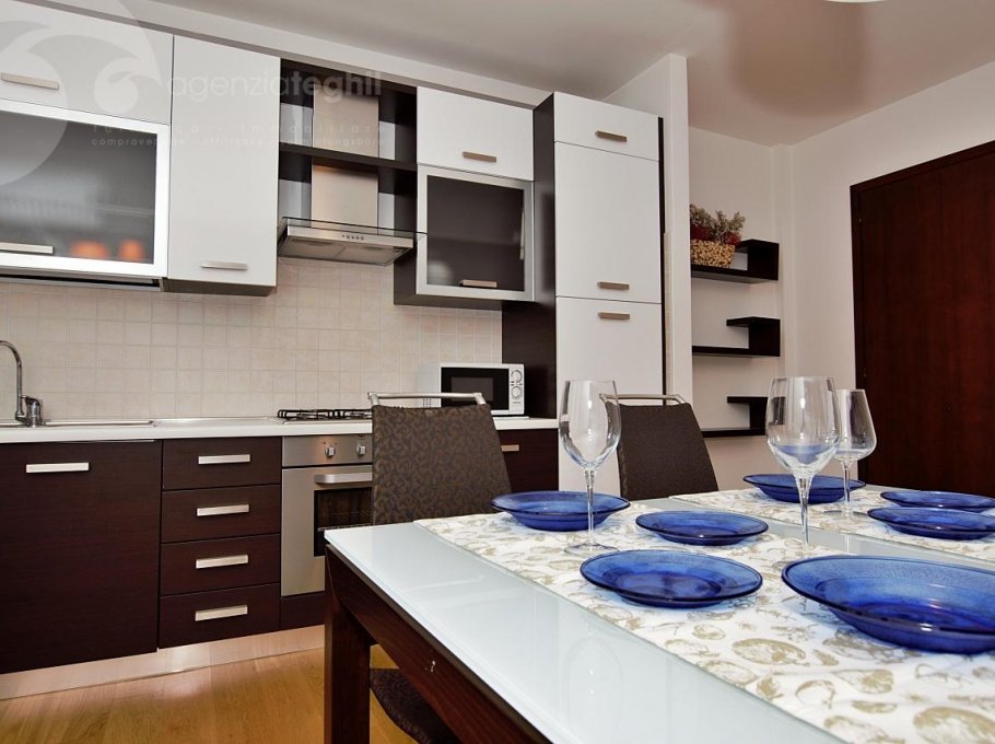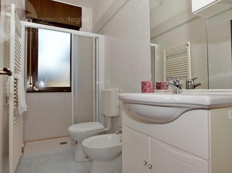 Typ C 3/4 Personen: Gemütliche Wohnung im ersten Stock komplett mit hochwertiger Ausstattung renoviert. Wohnzimmer mit Schlafcouch, Fernseher (nur italienische Programme) und Küchenzeile mit Kühlschrank 240 lt, Waschmaschine und Mikrowelle, große Terrasse; ein Doppelzimmer, ein Einzelzimmer und Badezimmer mit Duschkabine und Fenster.