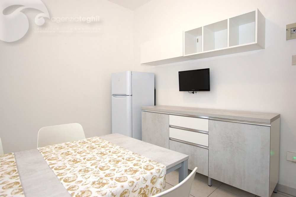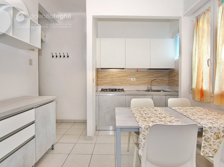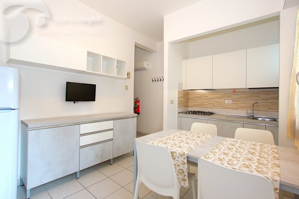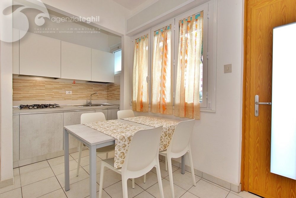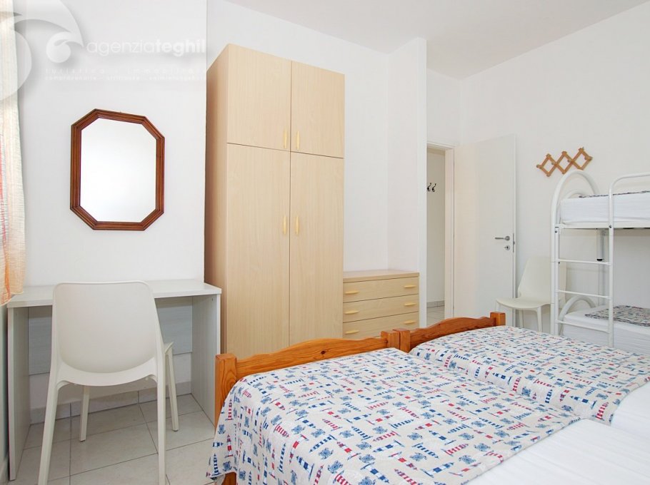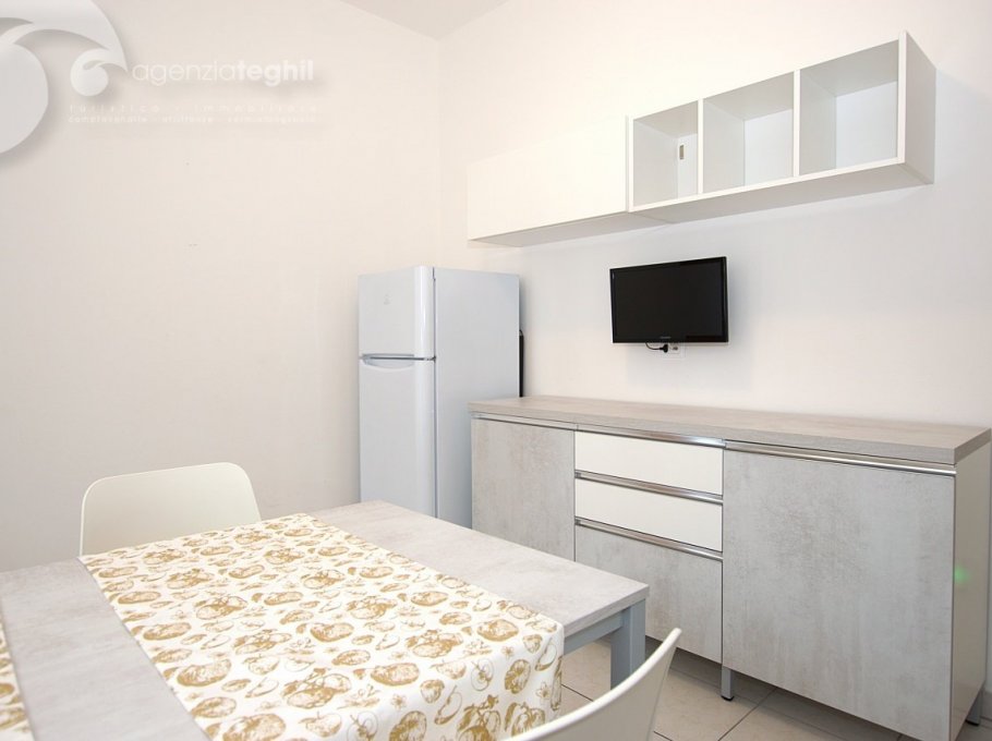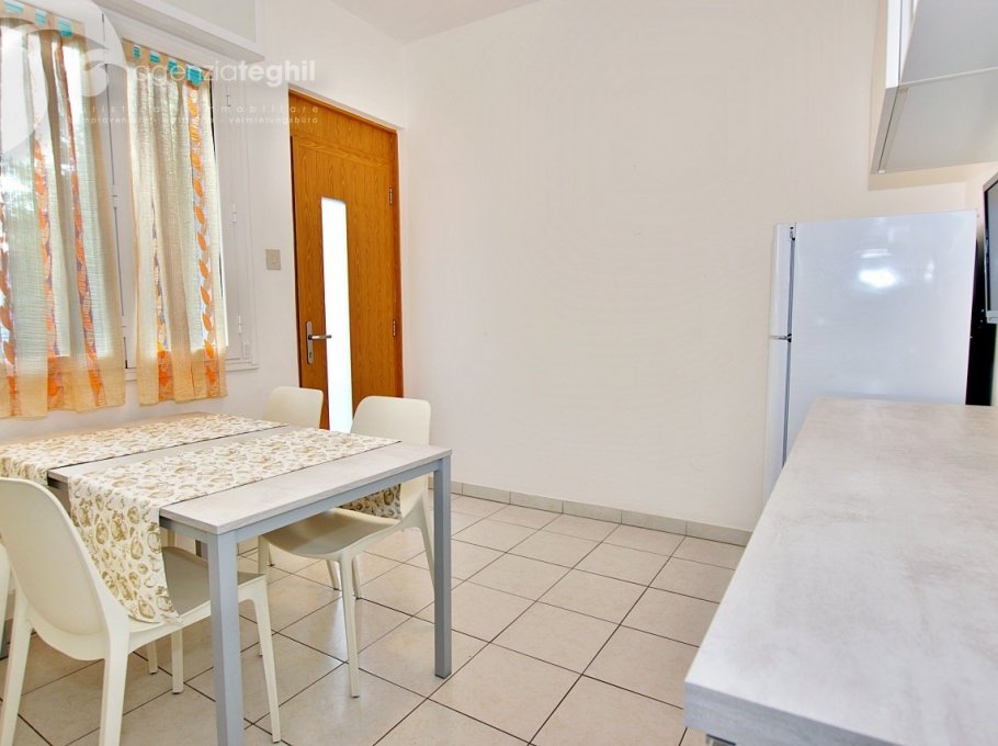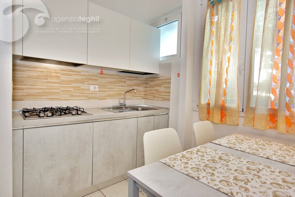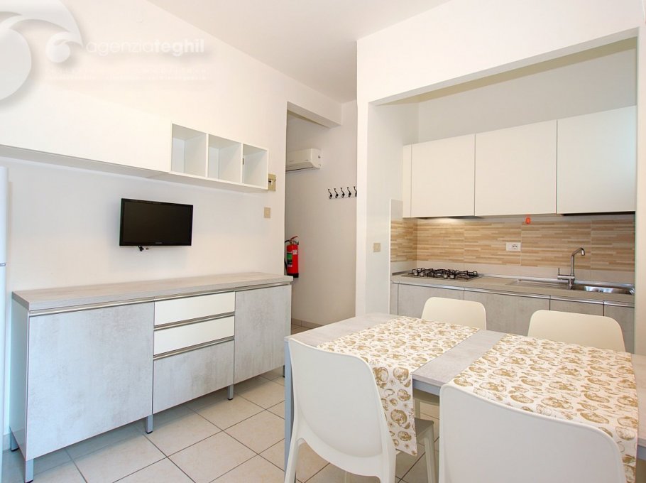 Typ B 4 Personen: Wohnung im 1. Stock (ohne Lift) kürzlich renoviert. Zusammengesetzt aus ein geräumigem Schlafzimmer mit einem Doppelbett und 1 Stockbett, renoviertem Bad mit Duschkabine und Fenster, ausgestattet mit Elektroboiler 50 lt., Wohnzimmer mit Tv (nur Italienische Tv-Sender), Kochnische mit Kühlschrank 240 lt (separater Gefrierfach), kleinem Balkonanteil.