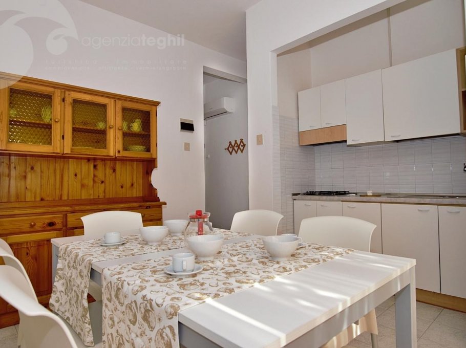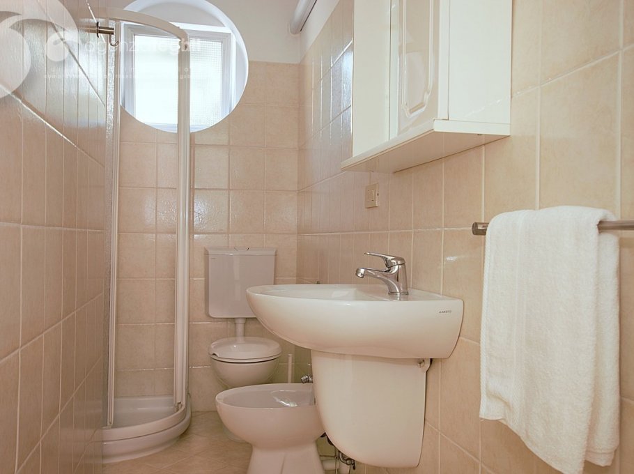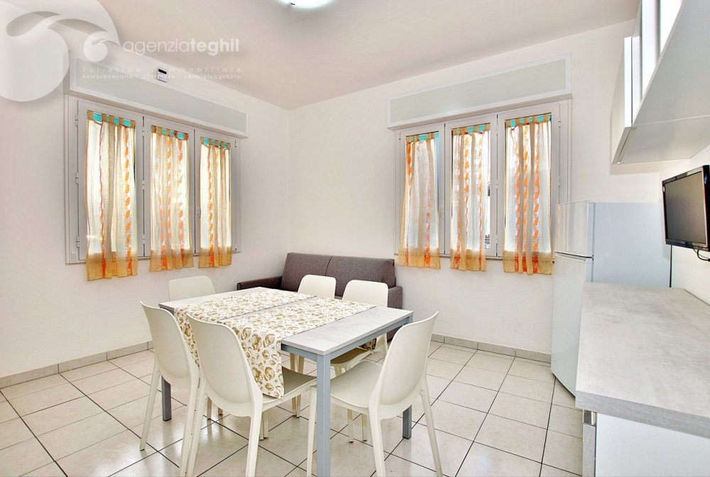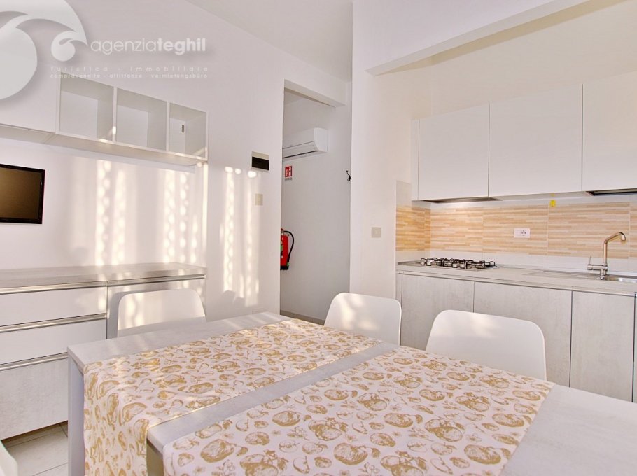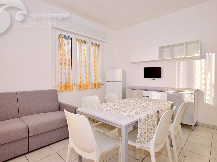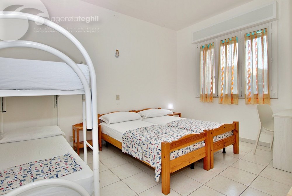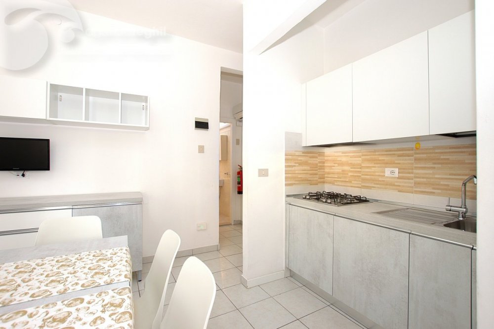 Typ B/1: 4/5 Personen. Eckwohnung im 1. Stock (kein Lift) kürzlich renoviert. Zusammengesetzt aus ein geräumigem Schlafzimmer mit einem Doppelbett und 1 Stockbett, Wohnzimmer mit Einzelbettcouch und Kochnische mit Küchenzeile mit Kühlschrank 240 lt (separater Gefrierfach), renoviertem Bad mit Duschkabine und Fenster, kleinem Balkonanteil.