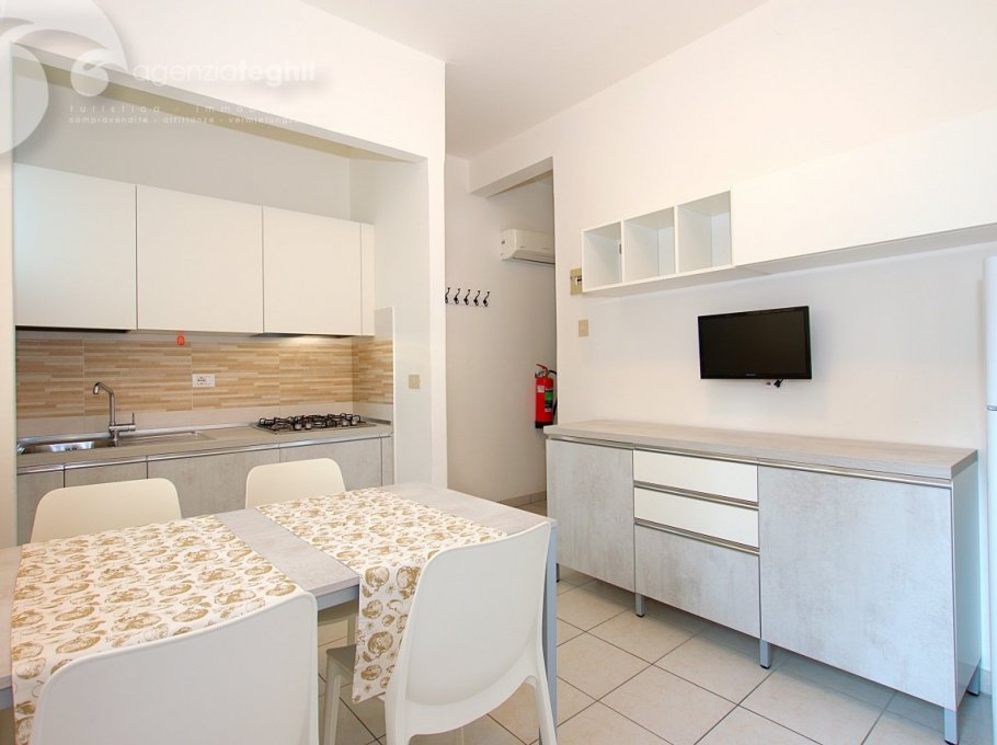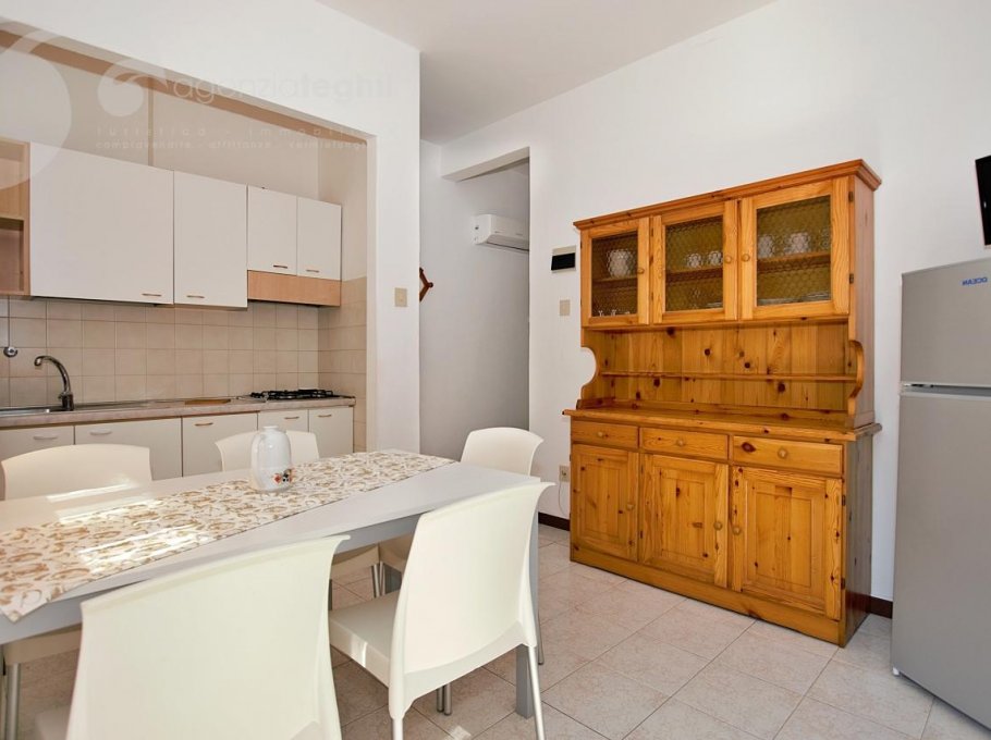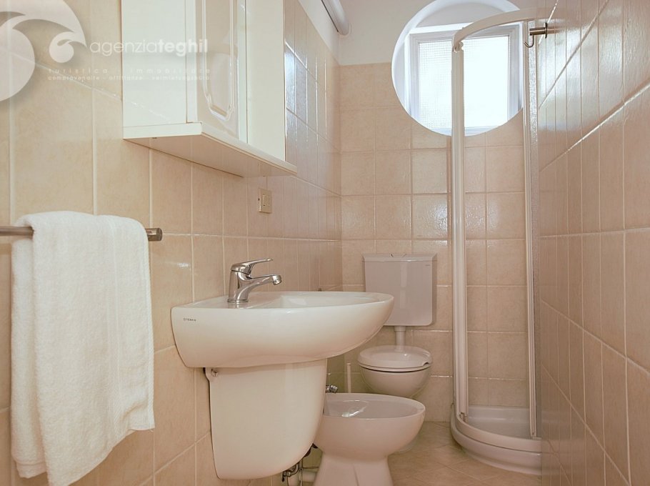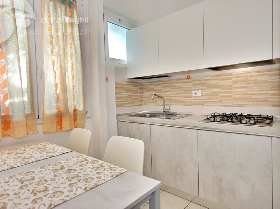 Typ B 4 Personen: Wohnung im 2. Stock (ohne Lift) kürzlich renoviert. Zusammengesetzt aus ein geräumigem Schlafzimmer mit einem Doppelbett und 1 Stockbett, renoviertem Bad mit Duschkabine und Fenster, ausgestattet mit Elektroboiler 50 l, Wohnzimmer mit Tv (nur Italienische Tv-Sender), Kochnische mit Kühlschrank 240 lt (separater Gefrierfach), kleinem Balkonanteil.