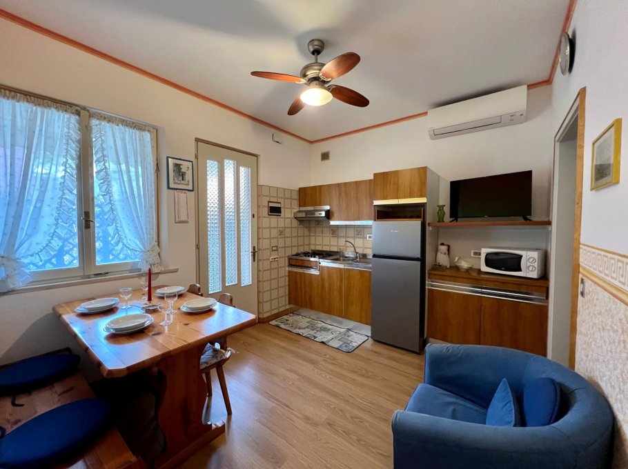 Typ F4. Wohnzimmer mit Kochecke und Essecke, Doppelzimmer, Stockbettzimmer, Bad mit Dusche/Wc, schoene und moeblierte Terrasse. Max 4 Pax. 40 mq