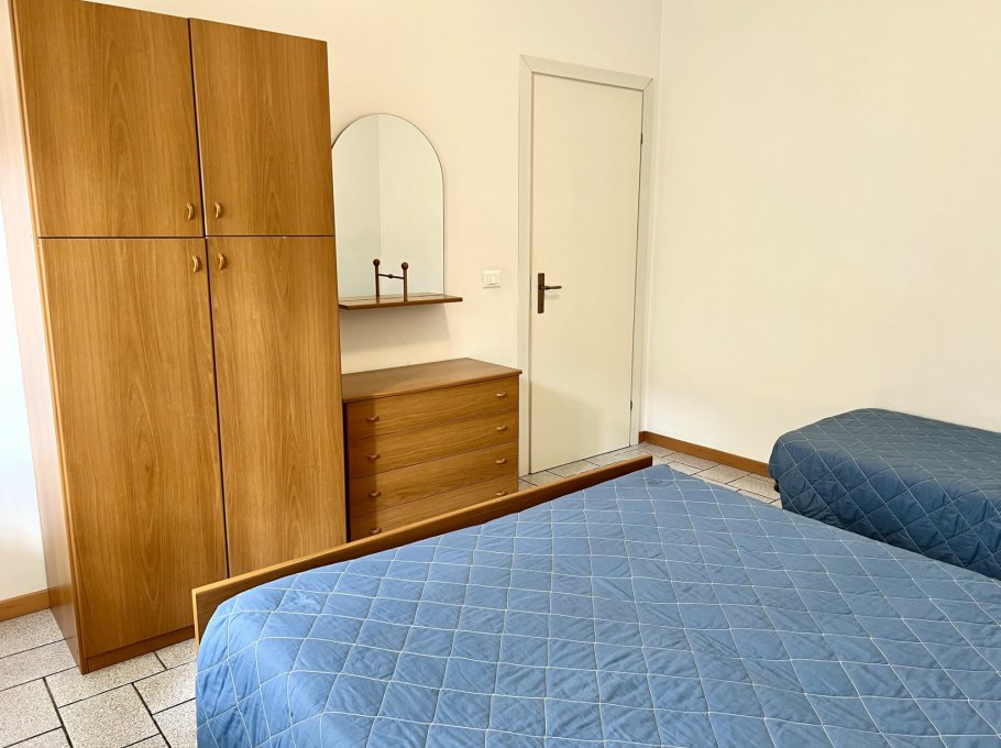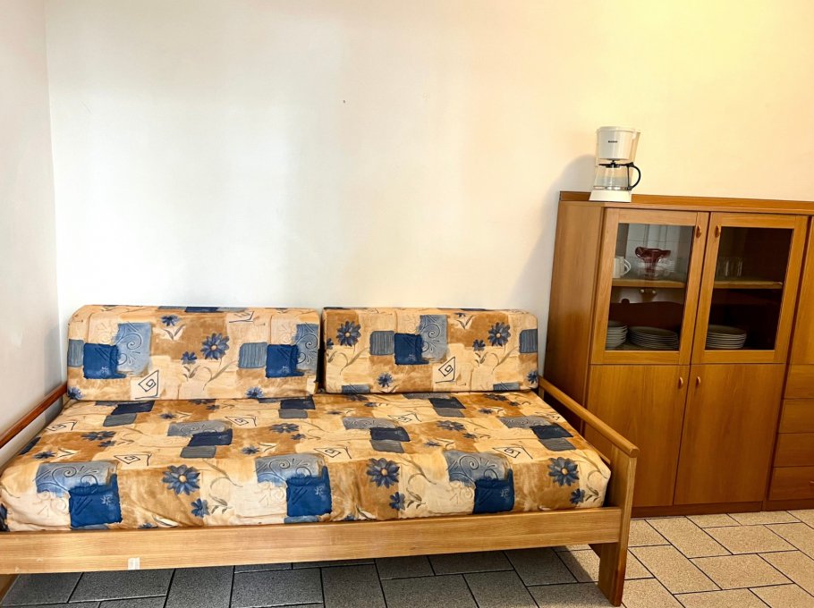 Typ C5T. Wohnzimmer mit Kochnische und Einzelschlafcouch, Dreibettzimmer, Einzelzimmer, Bad mit Duschkabine, kleiner ausgestatteter Aussenbereich. Die Wohnung liegt im Erdgeschoss. Max 5 Pax.