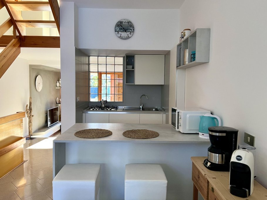 Das Reihenhaus verfuegt ueber privat Garten mit Mobiliar, Grill und 2 Liegebetten. 1 nummerierten Parkplatz. In der Wohnung: Tv (no Sat), Klimaanlage (nur in 1. Stock), Mikrowelle, klein Kuehlschrank, Filterkaffeemaschine, Espresso-Kaffeemaschine Lavazza A Modo Mio®, Wasserkocher, Foen. 1 Kostenlose „Light WI-FI (no streaming no download) fuer 3 Geraete pro Mal.