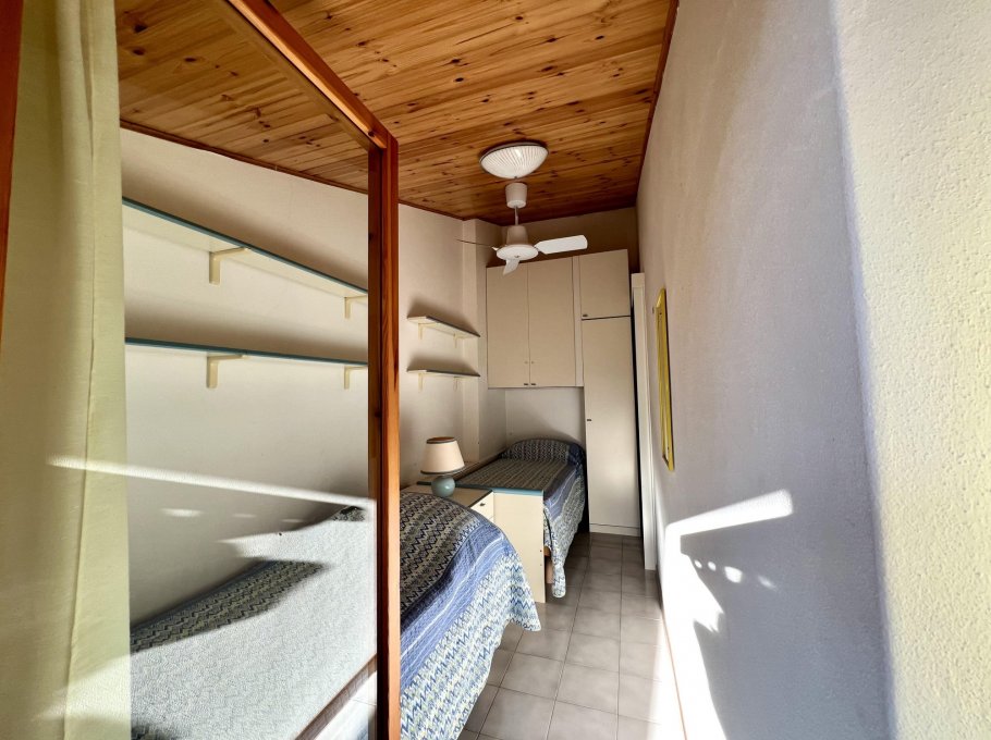 Im 1. Stock. Dreibettzimmer (3 Einzelbetten) mit Balkon. Ueber 4 Treppe: Doppelzimmer mit Balkon und Bad mit Duschkabine/Wc. Max 6 Pax.