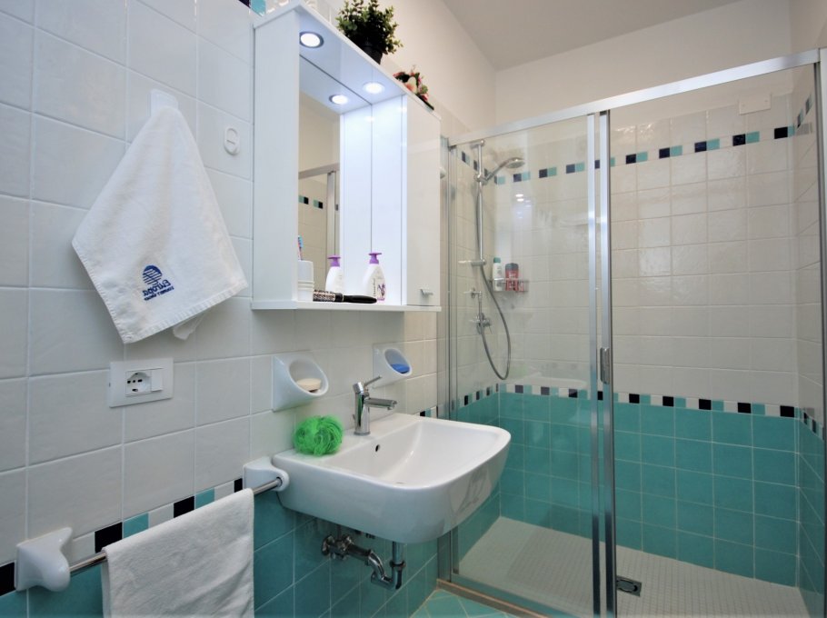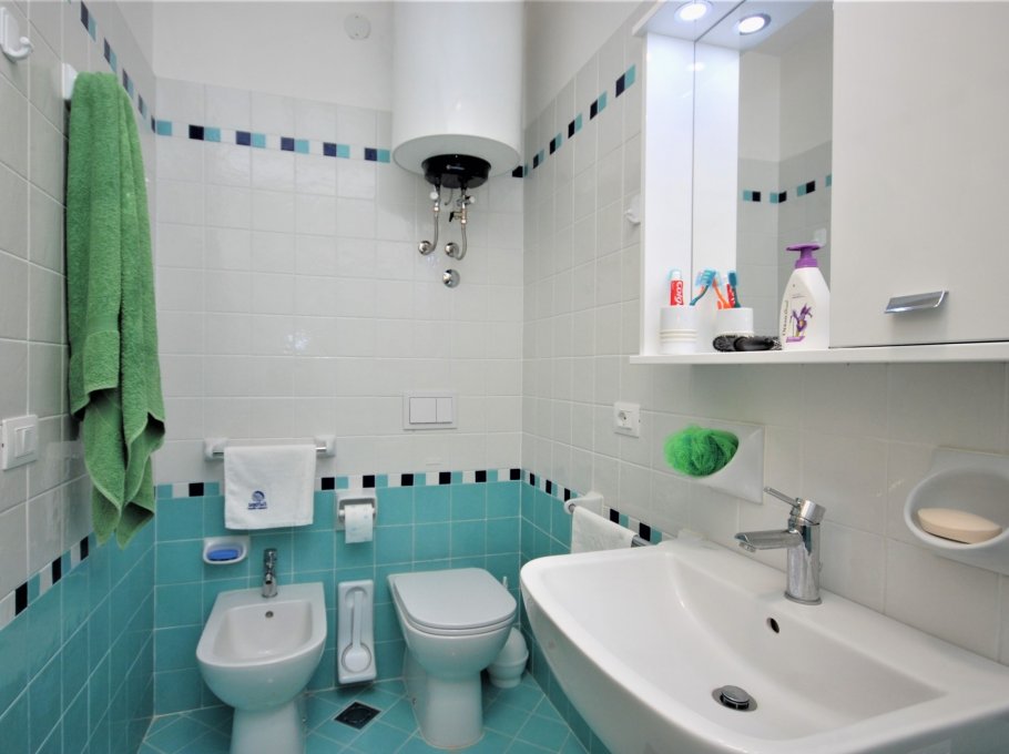 FOUR-ROOM-APARTMENT for 5-7 persons composed of: living-room with double divan-bed, 1 bedroom with double bed, 1 bedroom with 2 single beds, 1 bedroom with single bed, little kitchen, washing-machine, bathroom, terrace with barbecue, garage and no-covered parking place. Air conditioning.