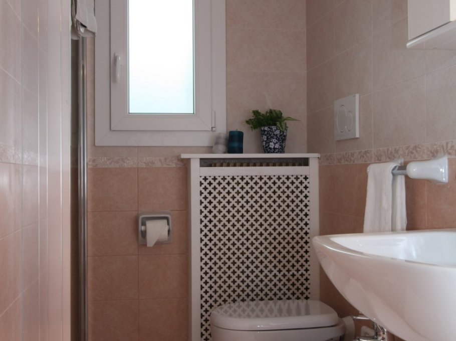 FIVE-ROOM-APARTMENT for 6-7 persons, on 2 LEVELS, composed of: living-room with single divan-bed, 1 bedroom with 1 single bed, little kitchen, bathroom, garden, barbecue, on the GROUND FLOOR. 1 bedroom with double bed, 1 bedroom with 2 single beds, 1 bedroom with single bed, bathroom, 2 balconies on the FIRST FLOOR. Air-conditioning.