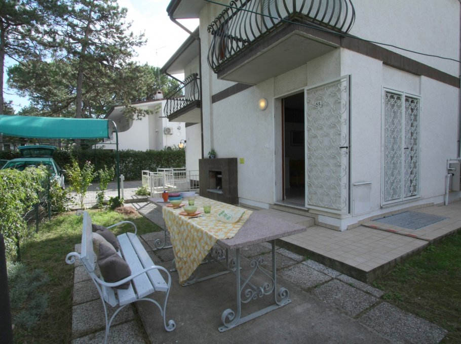 Double villa about 500 m from the beach with private enclosed garden and reserved parking-place. Located in the quiet of the pinewood but just a few steps from the centre. Apartments are furnished in a comfortable and functional way with coffee-machine, air conditioning, Sat-TV, microwave and safe.