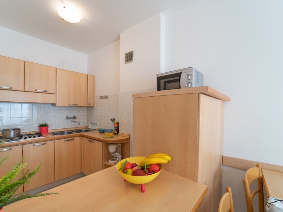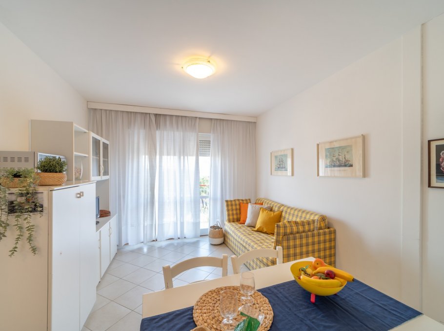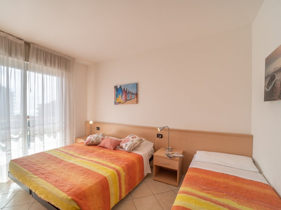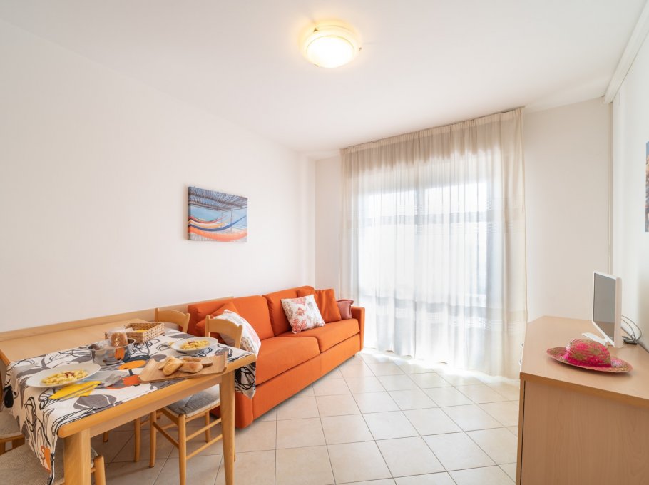 TWO-ROOM-APARTMENT for 2/3-5 persons composed of: living-room with double divand-bed or double divan-bed and single pull-out bed or single divan-bed and single pull-out bed, 1 bedroom with double bed or 1 bedroom with 3 single beds, kitchen corner, bathroom, balcony. Air conditioning.