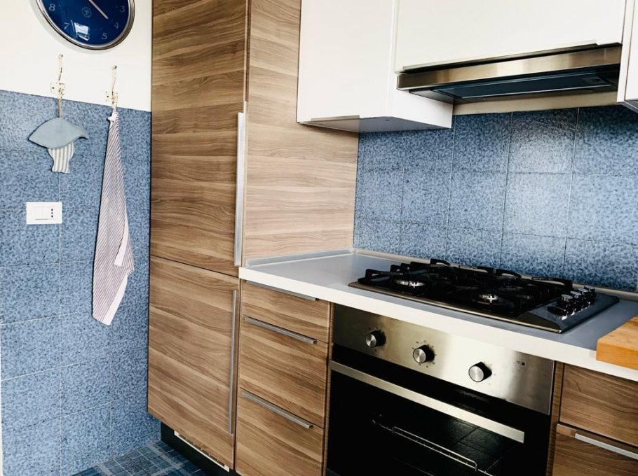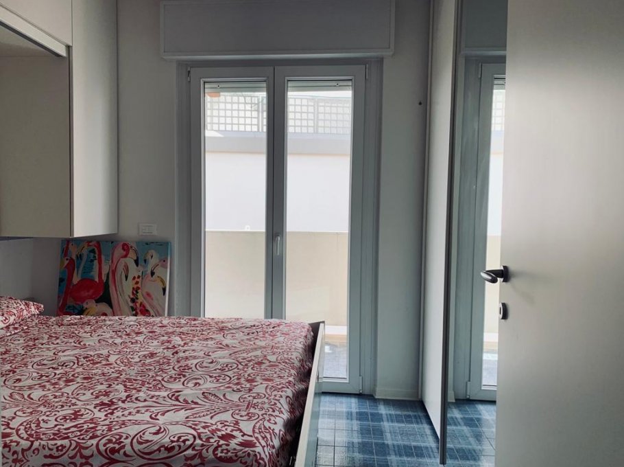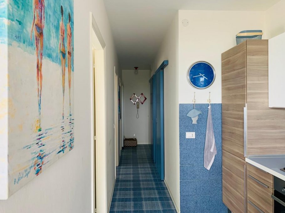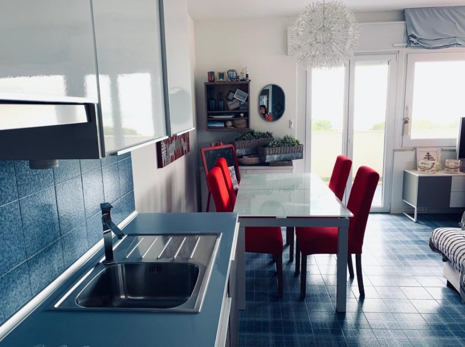 Top floor apartment with sea view composed of bright living room and kitchenette, large corner terrace, double bedroom, two bedrooms with foldaway bunk beds, bathroom with shower and second small bathroom.