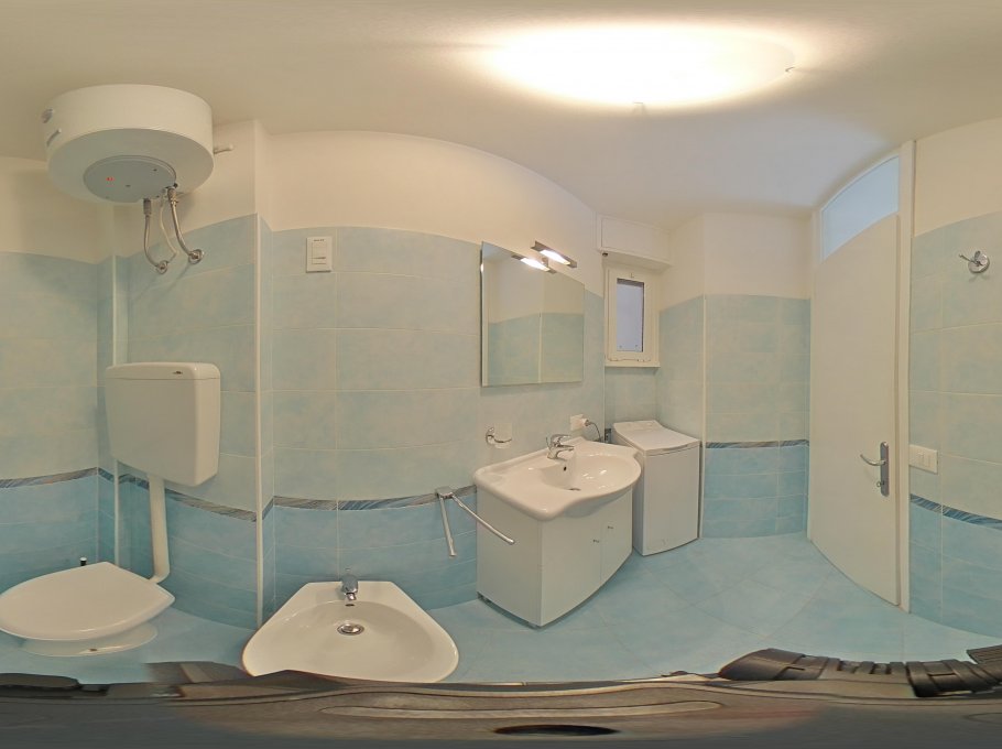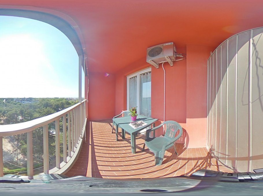 This comfortable apartment consist of living room with cooking area and double sofa-bed, tv and microwave, double bedded room, single bedroom, shower box/bidet/wc and a big furnished (with table and chairs) balcony. Parking space at the "Junior parking lot" within walking distance from the residence. Air conditioning and final cleaning are included in the price. In the rental rules of the agency are mentioned all the above written service’s ways.