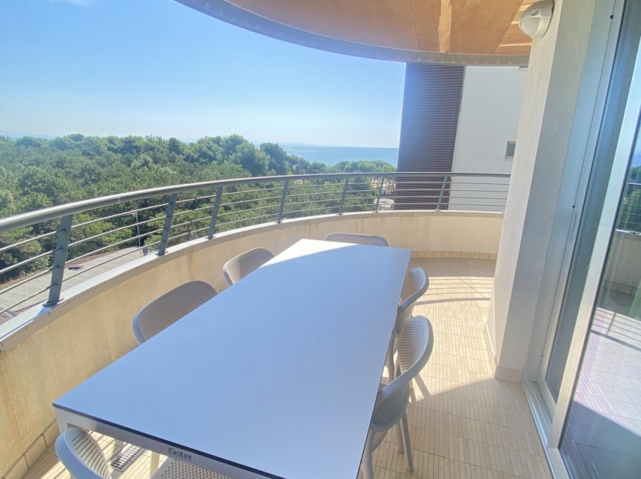 Each apartment is modern, elegant, it take all floor up and it composed with 2 sleeping rooms with 2 beds, large living room with panoramic view, Tv LCD, air conditioning, kitchen with dish-washer, 2 bathrooms with showerbox, washing-machine und balcony with sea view.