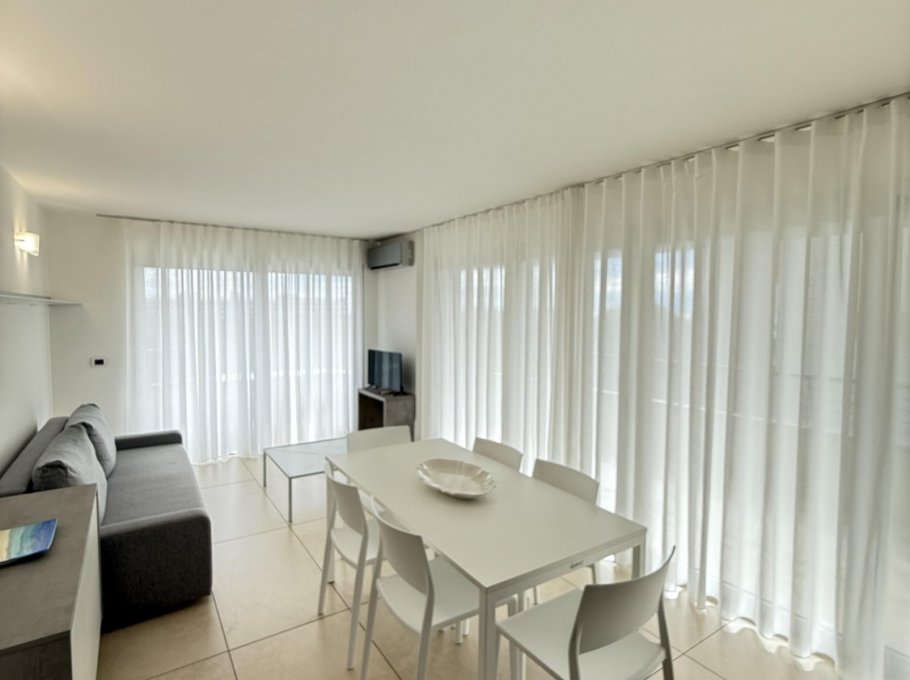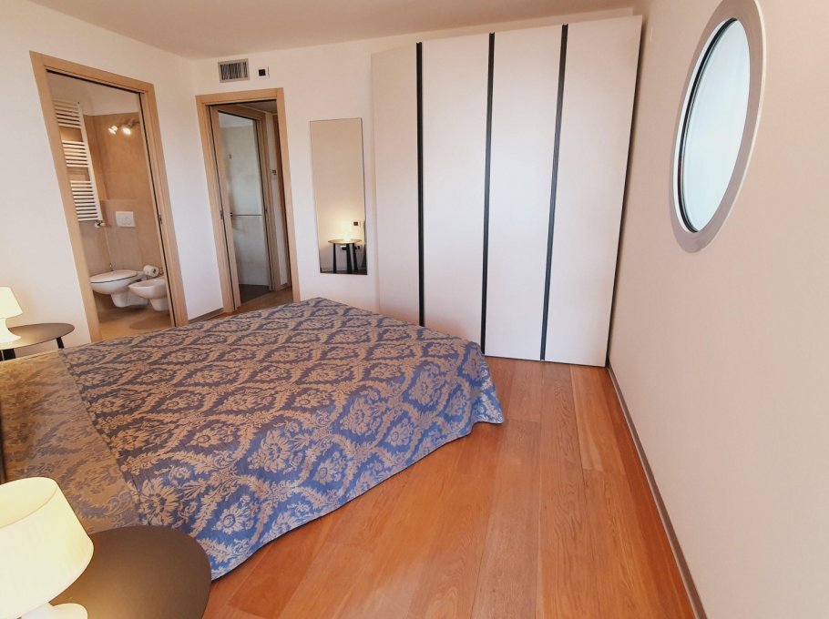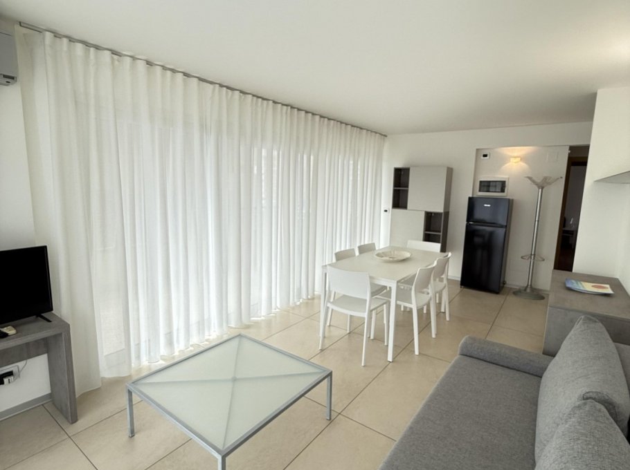 The Argonavis tower is a new modern residence with balcony with 360° panoramic view, 10 floors, 1 lift and private-parking. This apartment is on the 6° floor and is located only 50 mt. to the beach promenade, near to the center of Lignano Sabbiadoro.