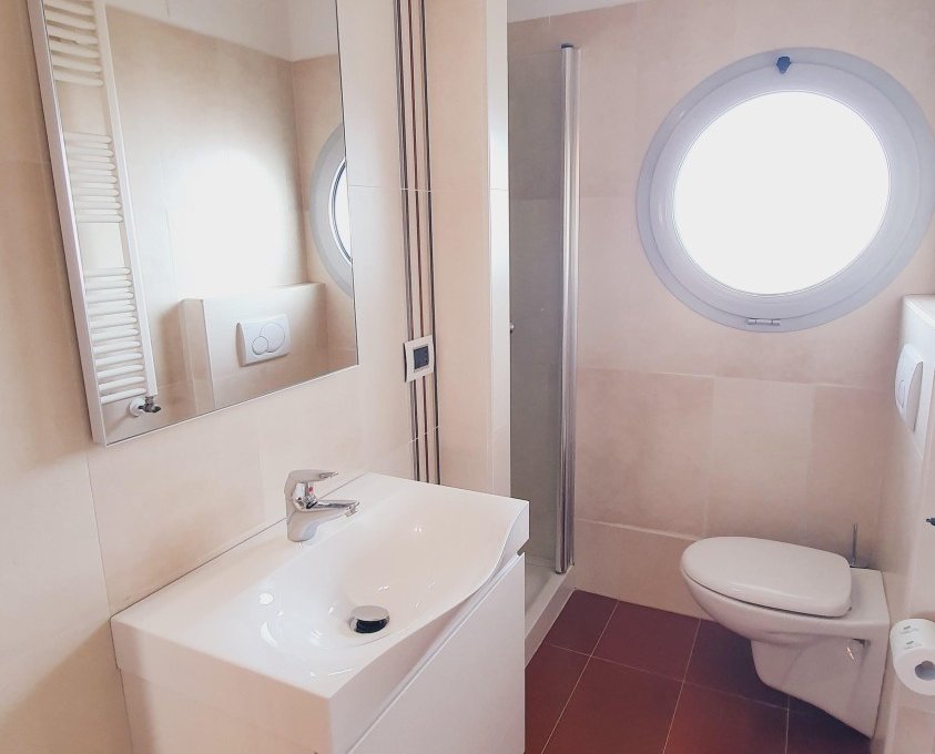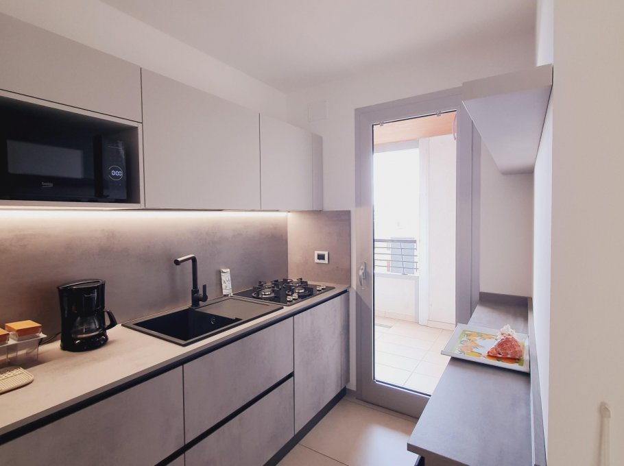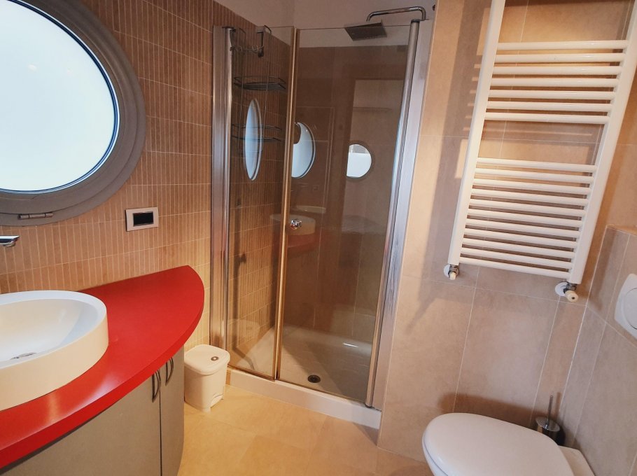 Each apartment is modern, elegant, it take all floor up and it composed with 2 sleeping rooms with 2 beds, large living room with panoramic view, Tv LCD, kitchen, 2 bathrooms with showerbox and balcony with sea view.